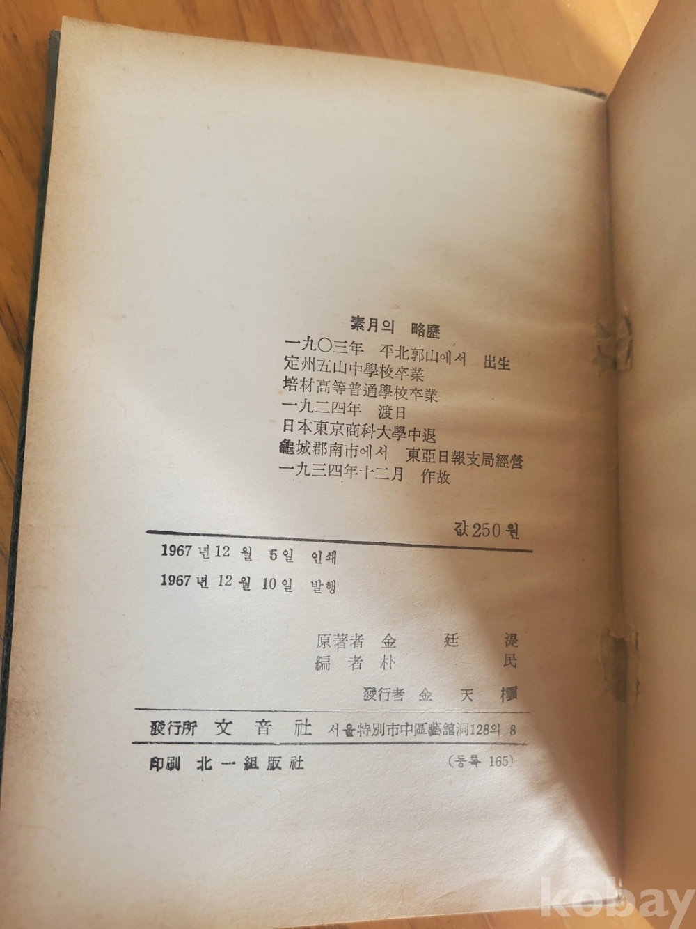 1. 못잊어, 김소월, 문음사, 1967년, 125쪽, 상태 상, 사진 참조