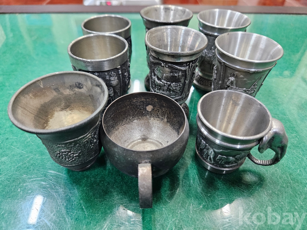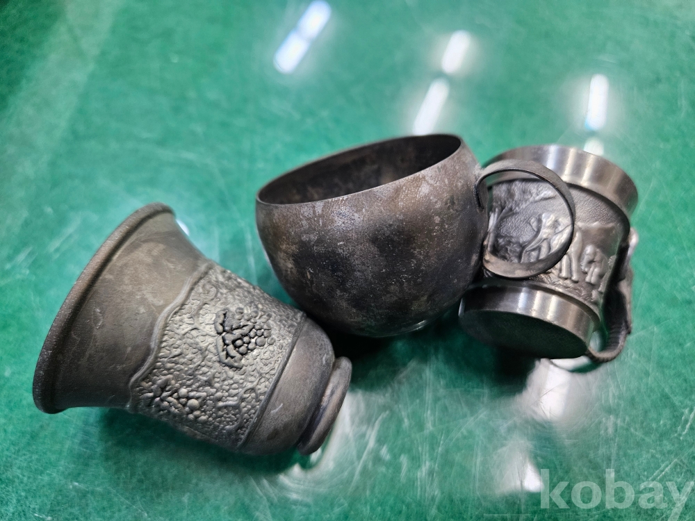 손잡이 있는 얇은컵은 주석재질은 아니고 은도금 같습니다