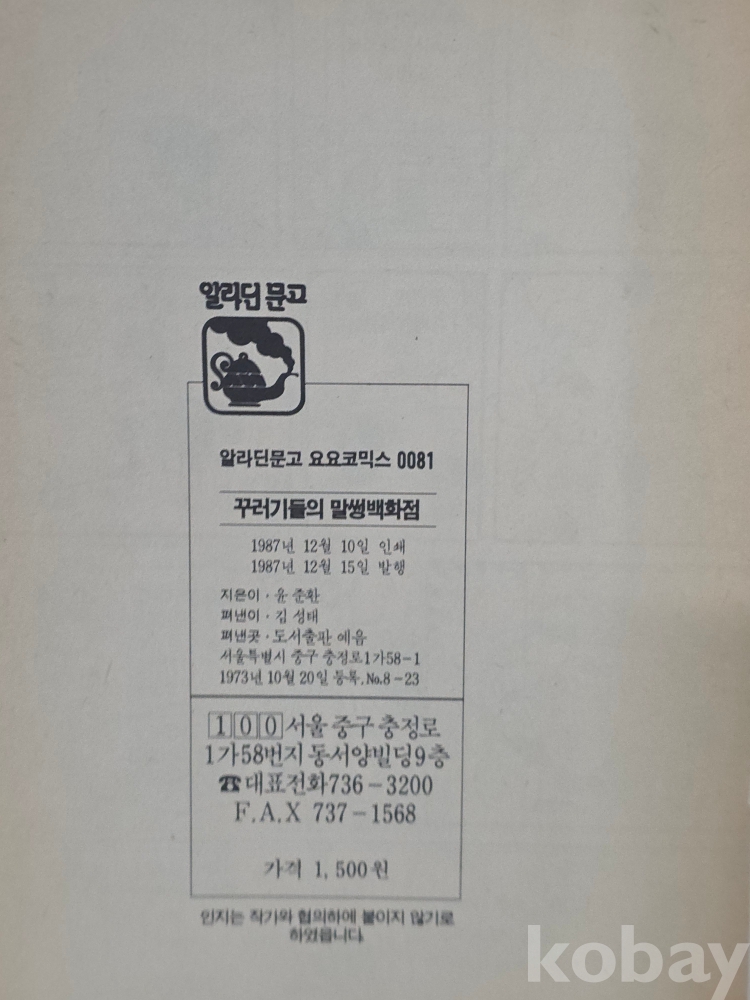 요요코믹스 꾸러기들의 말썽백화점만화책입니다. 낙자없으나 앞표지떨어짐있습니다 본드로수리가능할거같습니다.사진잘보시고 입찰해주세요 많은관심부탁드려요 감사합니다.
