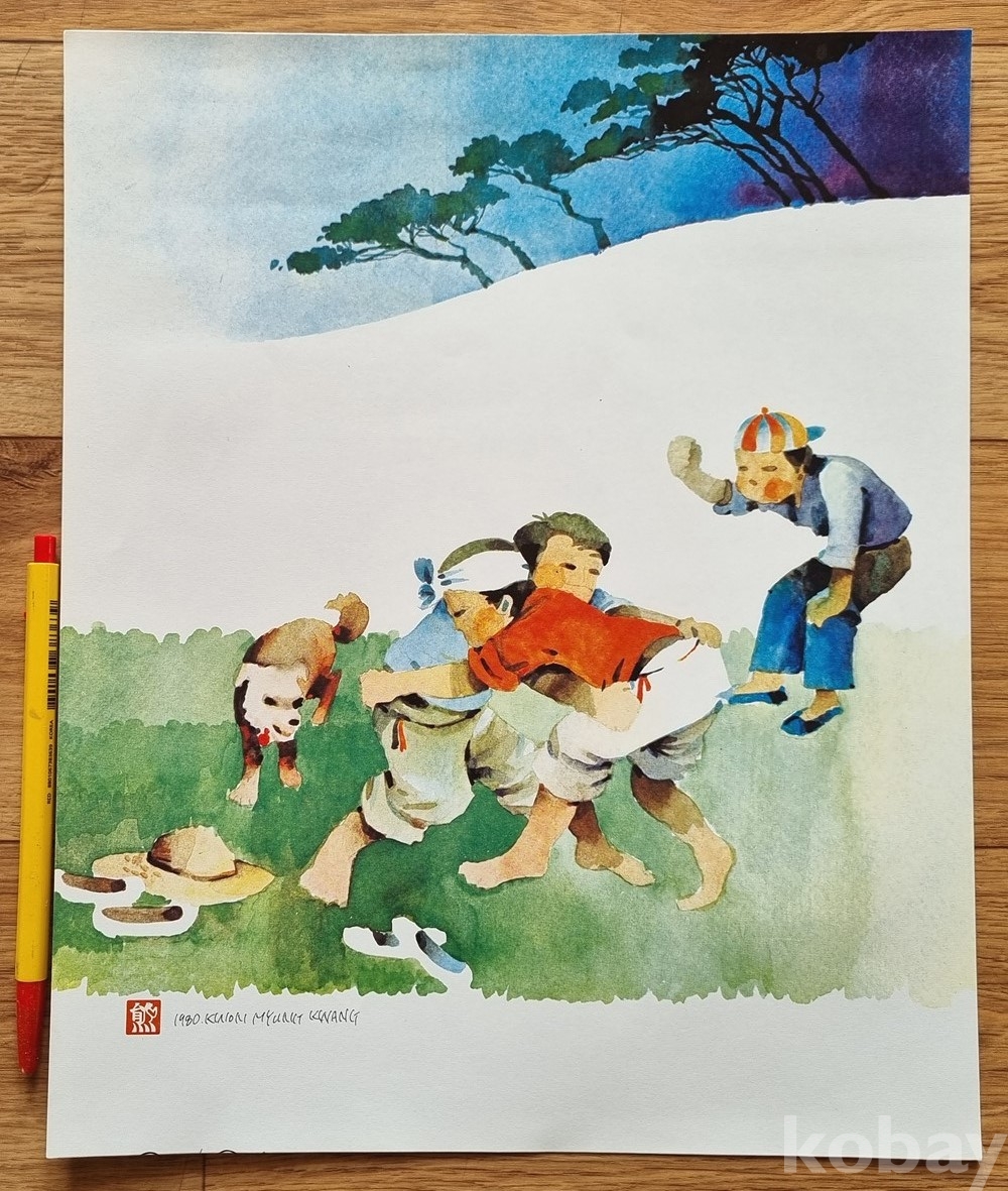 K-9 / 풍속화. 동화 그림삽화 (1979년 권명광 서명 낙관) 수채화풍 (인쇄본)