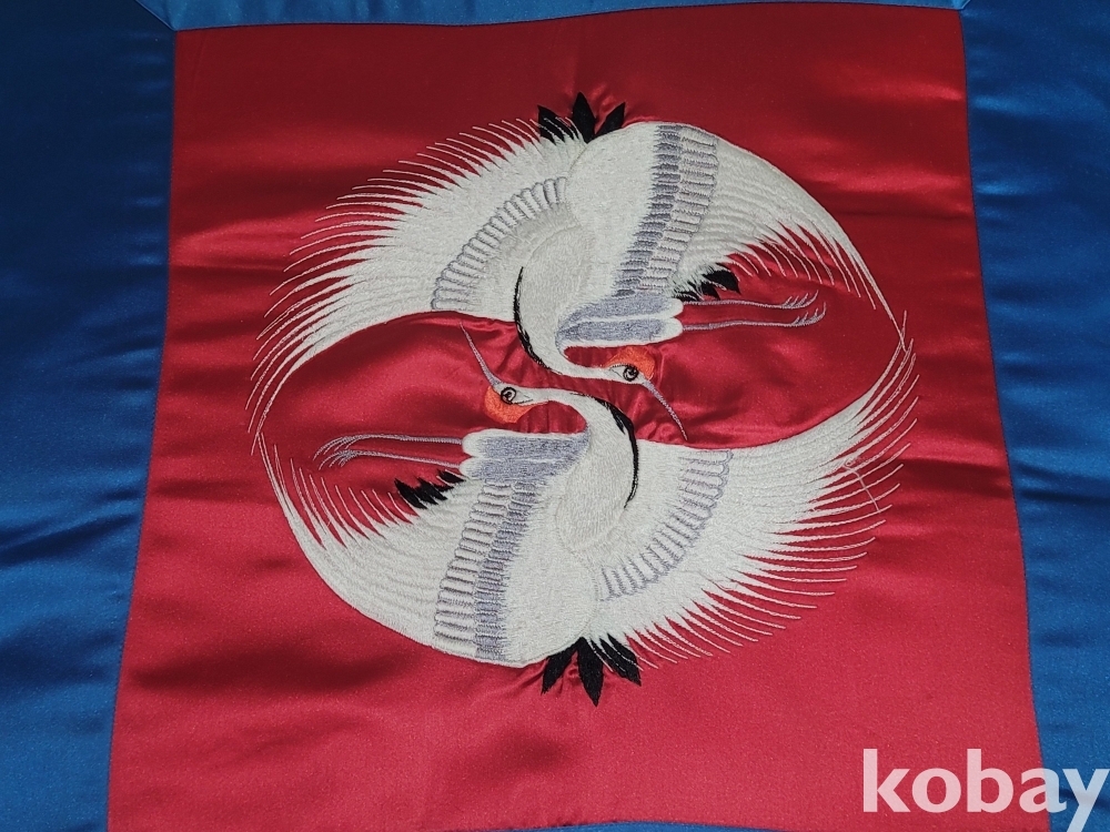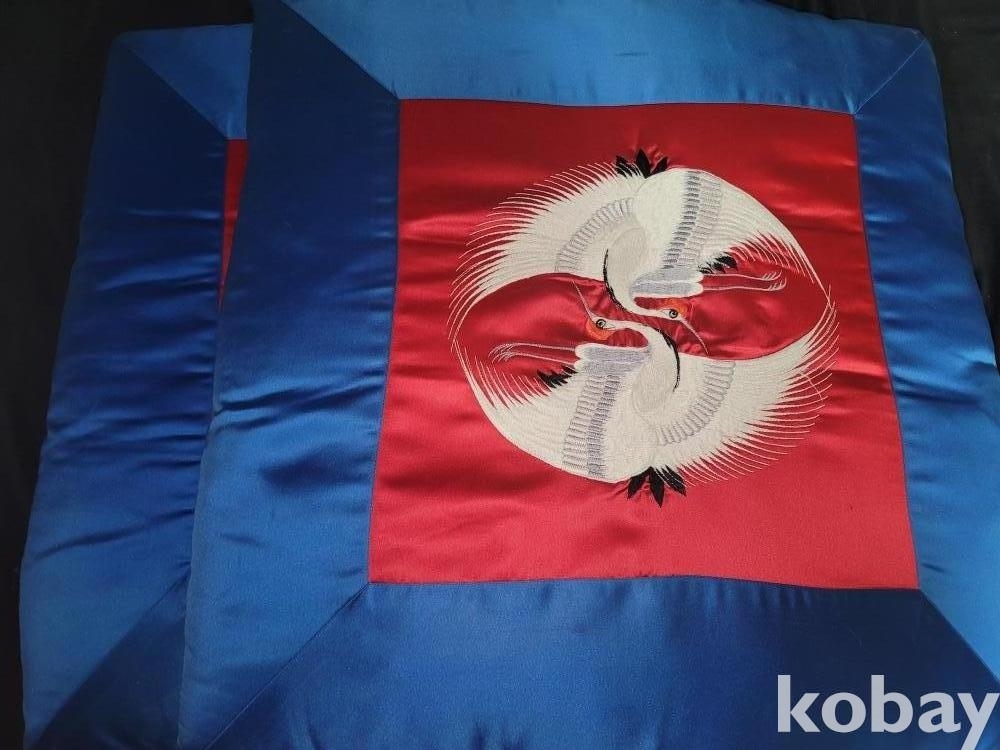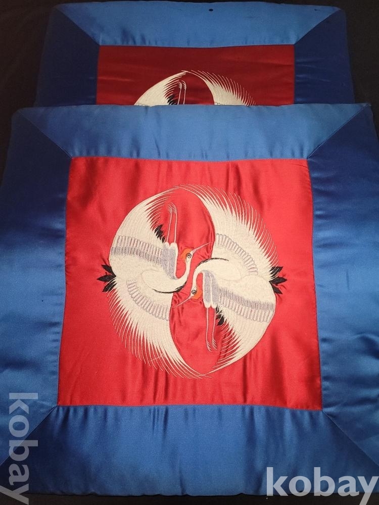 꽤 두꺼운 빈티지 고급 전통 자수 두루미 방석 2개 일괄입니다.