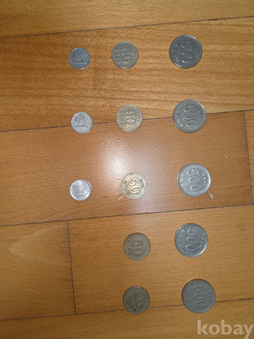 1원 : 79년*1, 69년*2 50원: 73년*1, 74년*2, 81년*1, 82년*1 500원: 83년*1, 84년*2, 90년*2 으로 구성되어있습니다.
