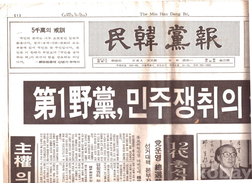 1. 1984년 민한당보 (발행인: 유치송 민한당 총재) - 4면 발행