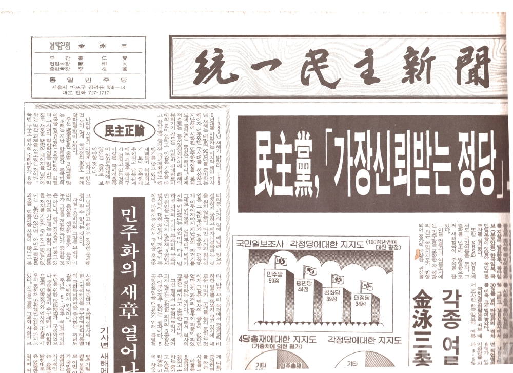 2. 1989년 통일민주신문 (발행인: 김영삼 총재) - 8면 발행