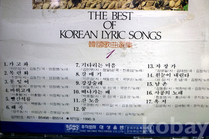 수록 곡 목은 사진을 참조하시기 바랍니다