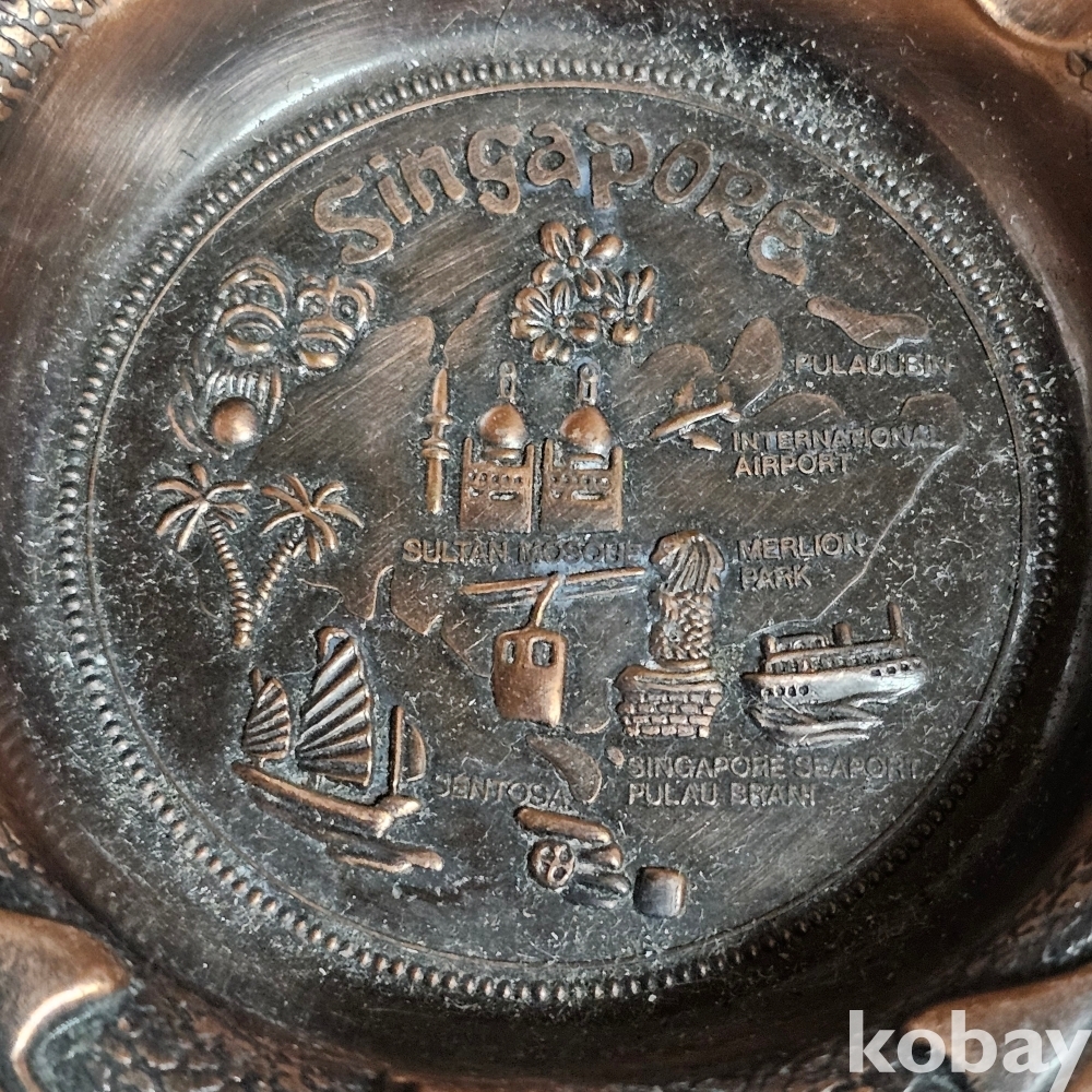(((관광기념품))) 오래전 싱가포르 관광기념 금속 벽걸이겸용 재떨이