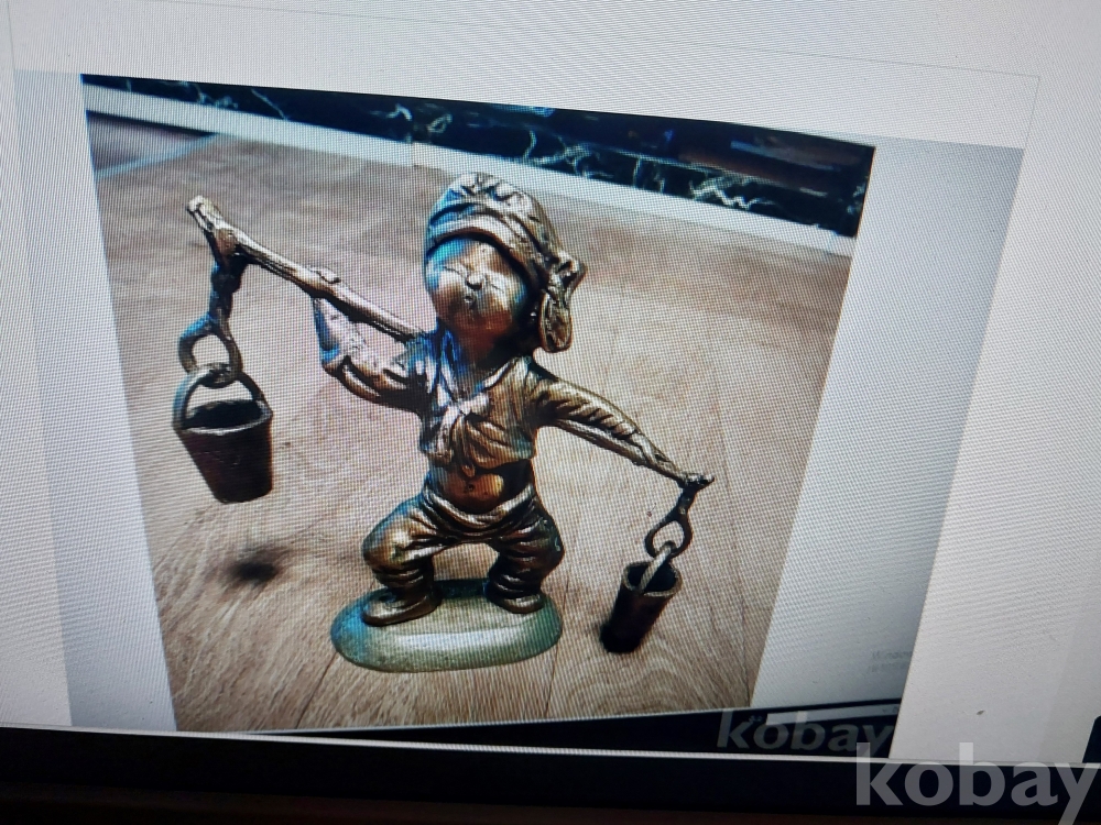 조형미 좋은 해학적인 물지개를 지고 있는 아동 브론즈 작품입니다.