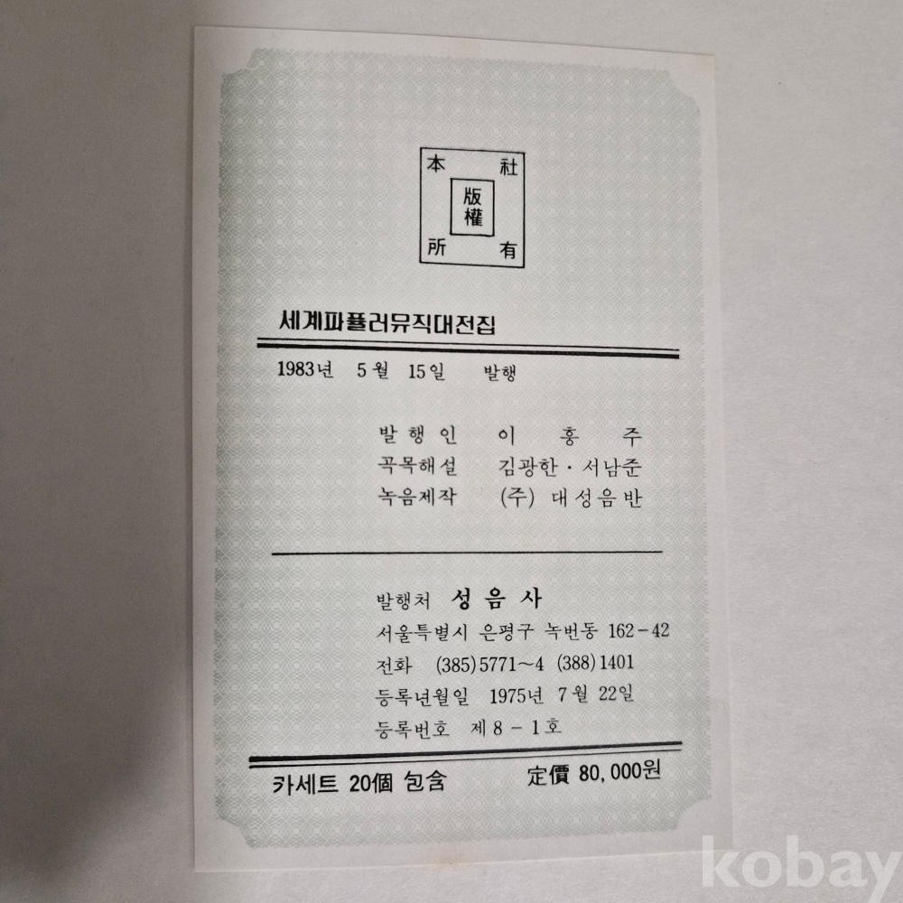 성음사 발행 ‘세계 파퓨러 뮤직’ 대전집 이며