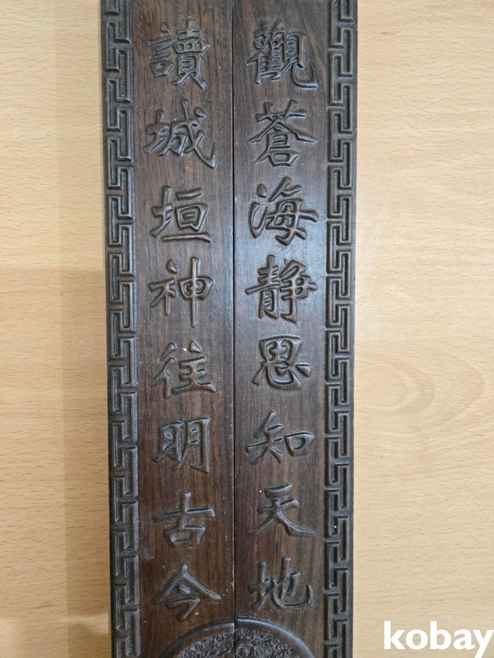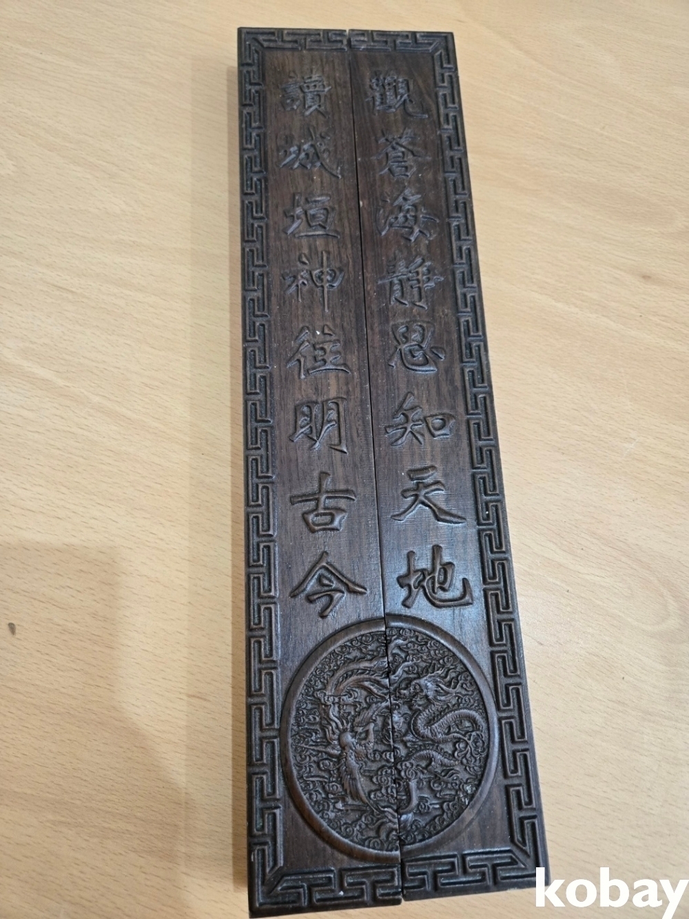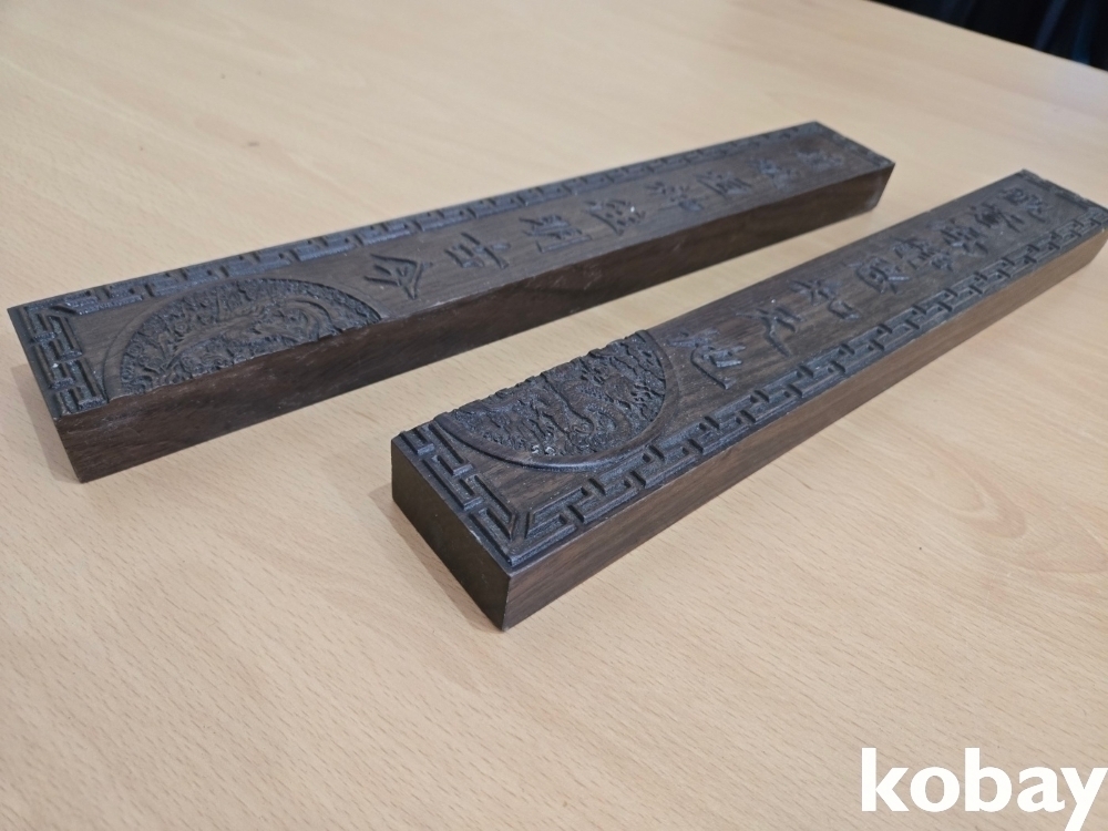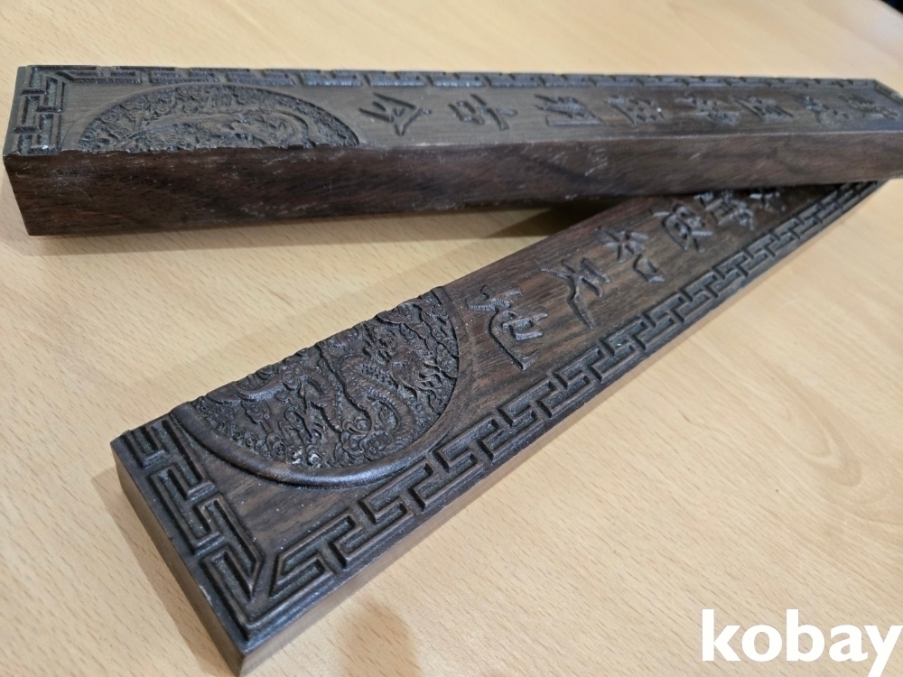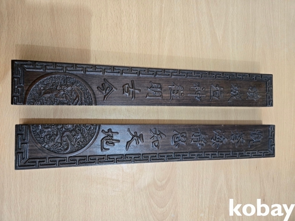 무거운 나무로 글씨가 조각되어 있는 문진 입니다.