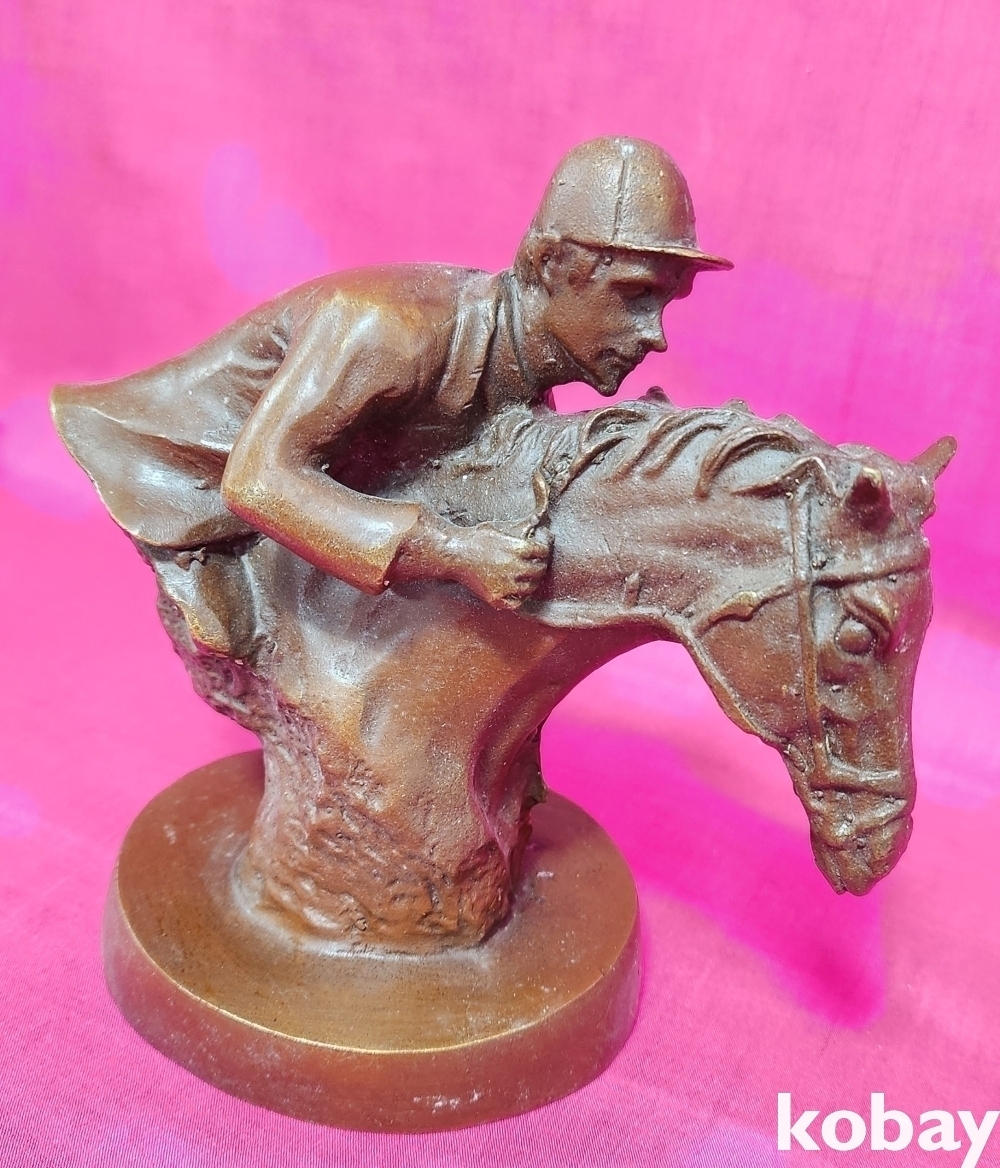 적동(赤銅)으로 만들어진 경주마 형상 조각품입니다,
