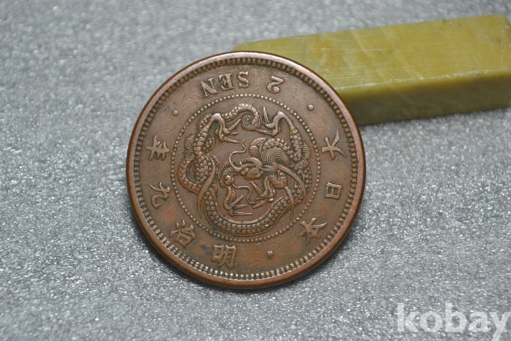 ㅡ> 100년 넘는 오래된 명치9년도(1876년도) 일본 대형 용 2전청동화 입니다.