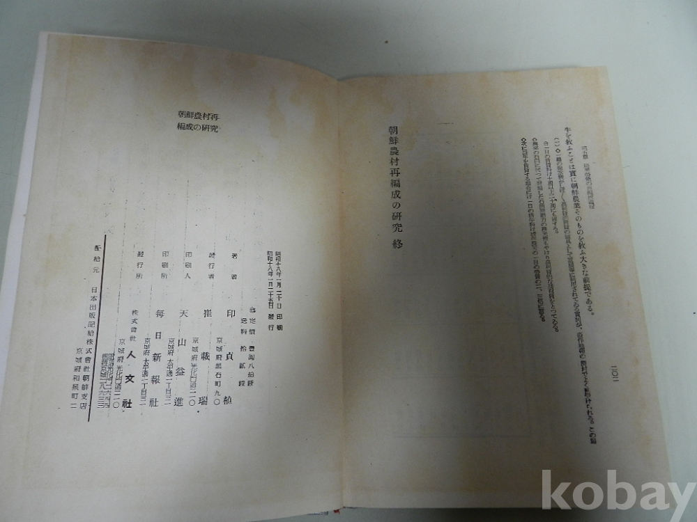 유명 학자 인정식 선생의 일제말기 43년 발행 초판 으로 조선 농촌의 모든 상황 지주.소작인 등 도표와 함께 상세히 나와있어 연구 자료로 활용하면 좋을거 같습니다 상태 양호 이미지 참고 바랍니다