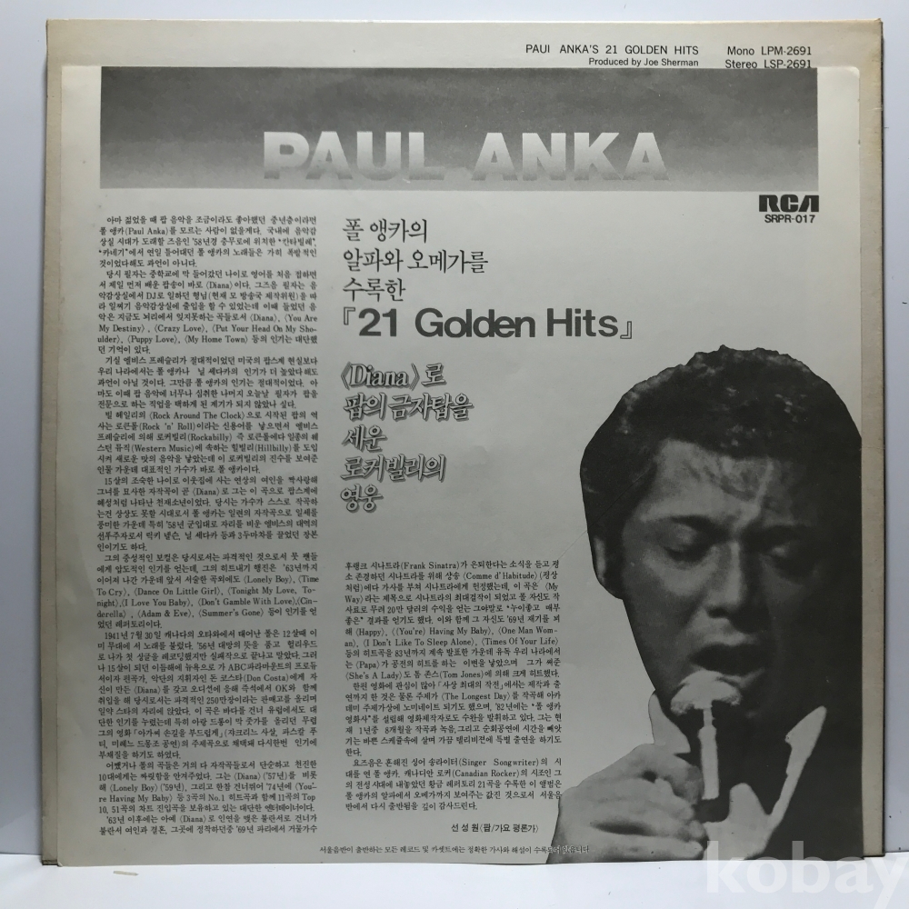 LP 83,740-81 Paul Anka - Paul Anka's 21 Golden Hits (폴 앙카의 골든히트곡 21) . 자켓 EX+ 알판 EX 86 년 국내반