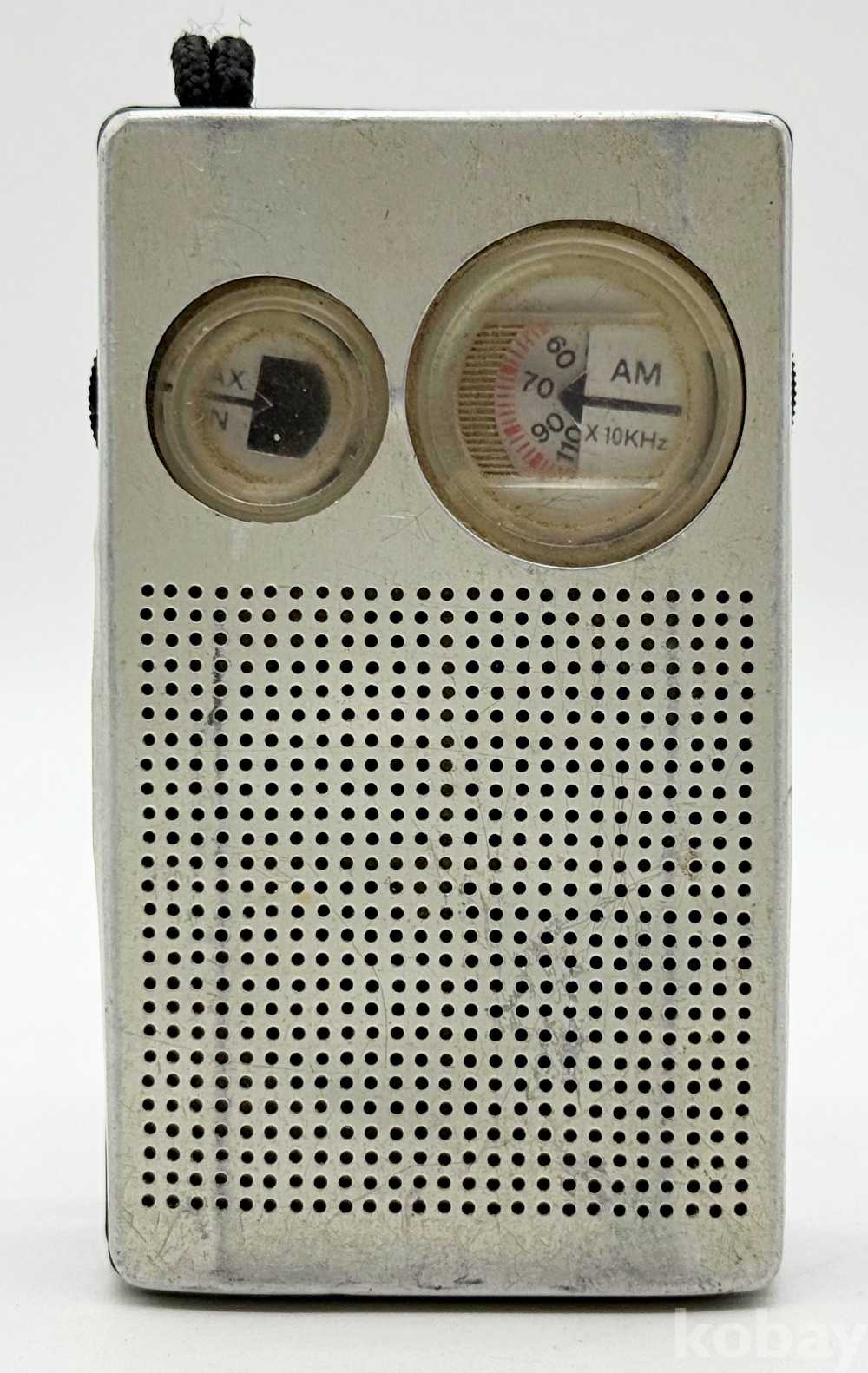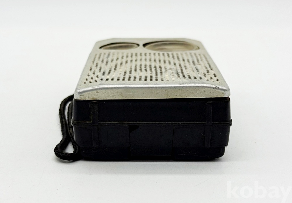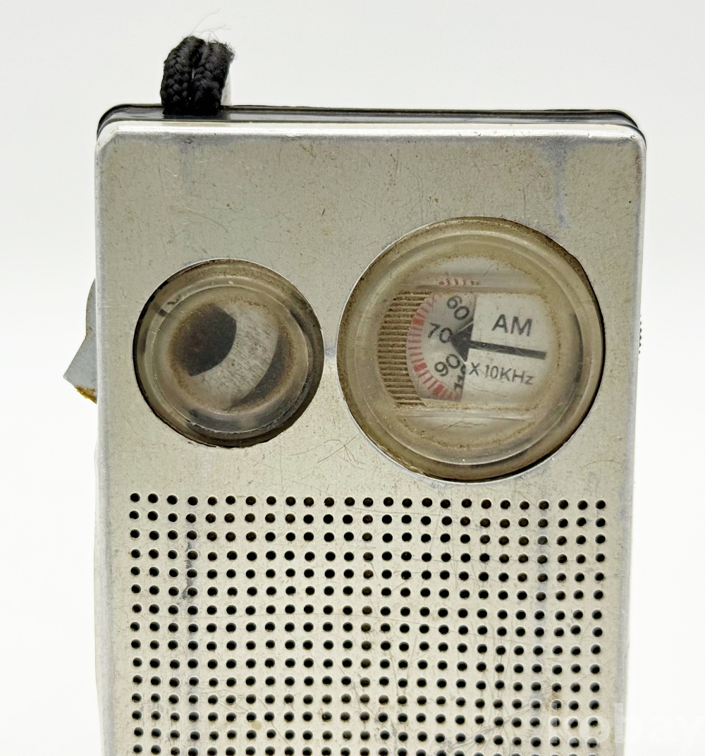 상품설명 | 휴대용 AM 트랜지스터 라디오이다. 전면 우측에는 주파수 조절, 좌측에는 볼륨을 조절하는 원형 다이얼이 특징이다. 전원 : DC 9V (FC-I) | ||