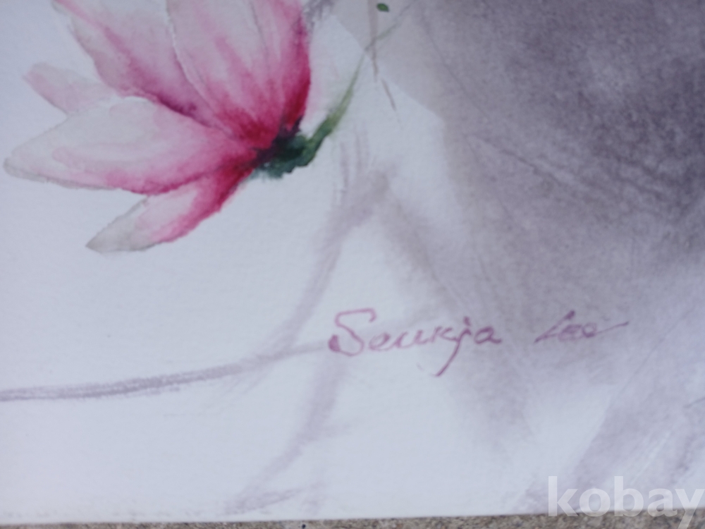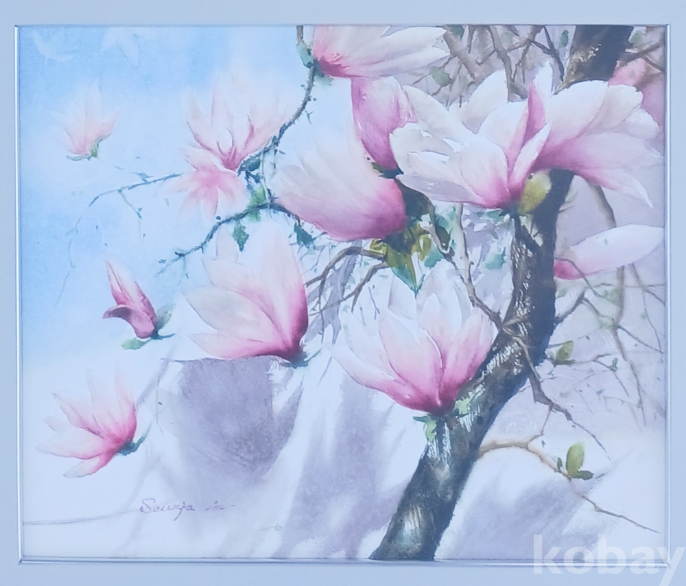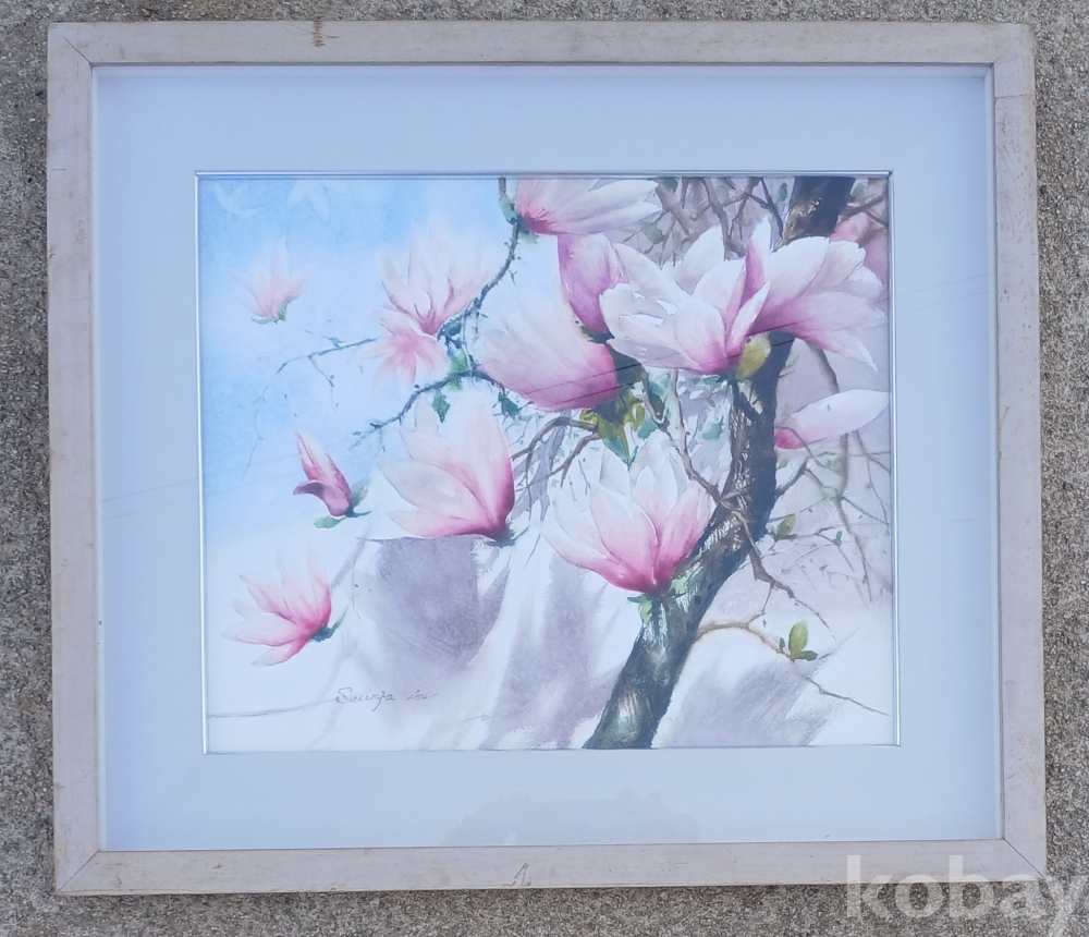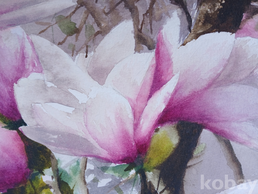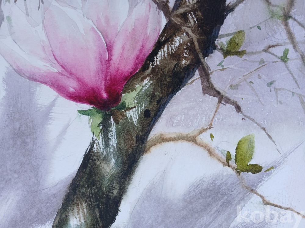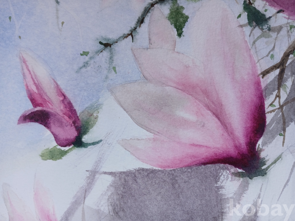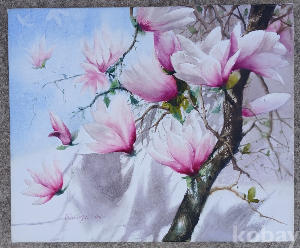 자 목련을 그린 것으로 수채화의 화사하고 맑은 톤이 잘 나타나 있습니다.