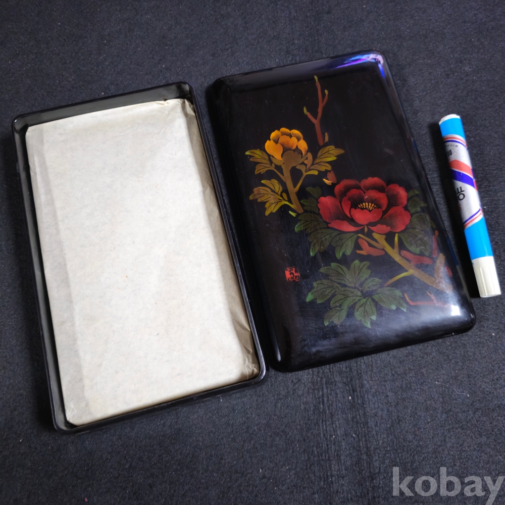 (((관광기념품/빈티지소품))) 오래전 일본에서만든 꽃그림이 이쁜 멜라민재질로알고있는 빈티지 직사각 다용도 소품함