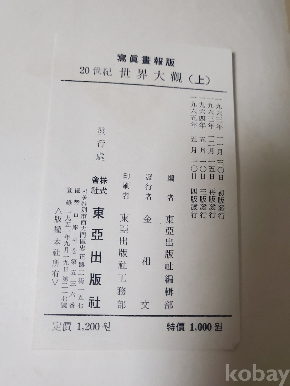 1. 20세기 세계대관 상하(전2권), 동아출판사, 사진화보판, 상태 상, 사진 참조