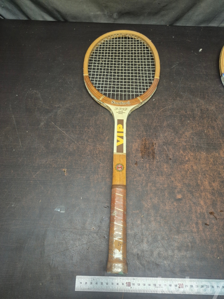 1970-80년대 빈티지 나무 테니스 라켓 2점 SUNFORD 7-752VIP모델 슬래진저 매치플레이 라켓 2점 일괄 69*23*4