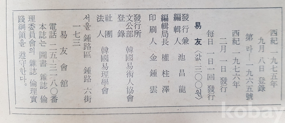 [창간호] 易友*1976년,한국역술인협회, 164p