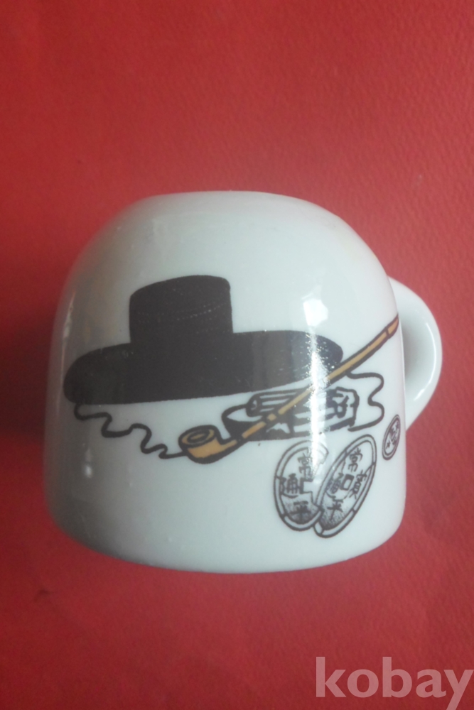갓과 재떨이 담뱃대 상평통보가 보이는 등잔, 호롱
