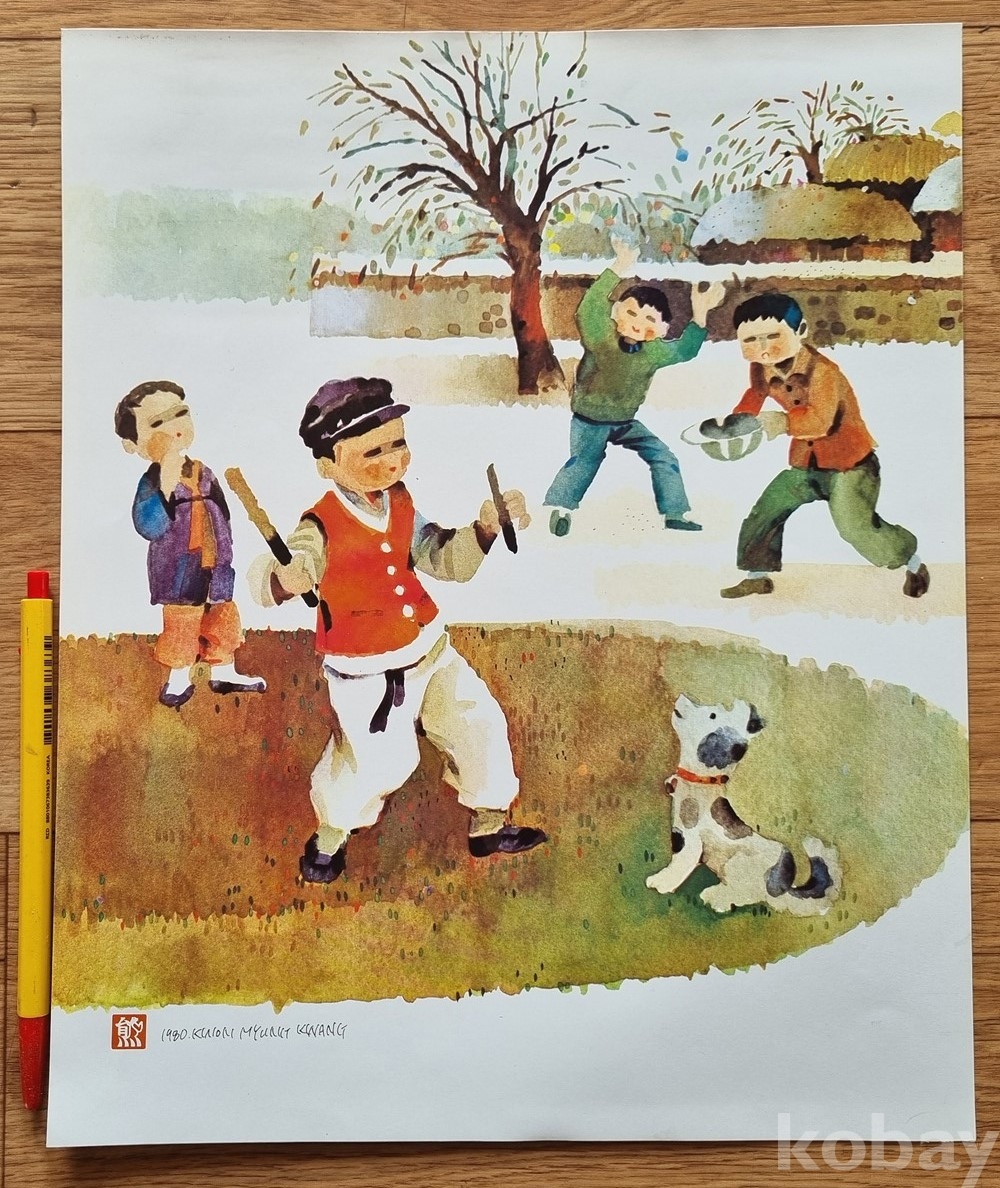 K-10 / 풍속화. 동화 그림삽화 (1979년 권명광 서명 낙관) 수채화풍 (인쇄본)