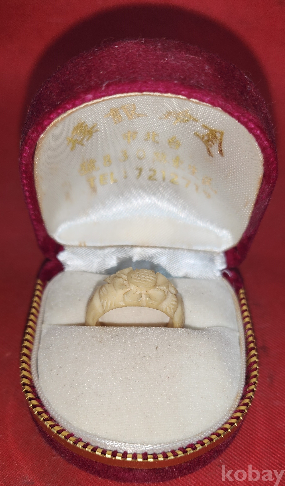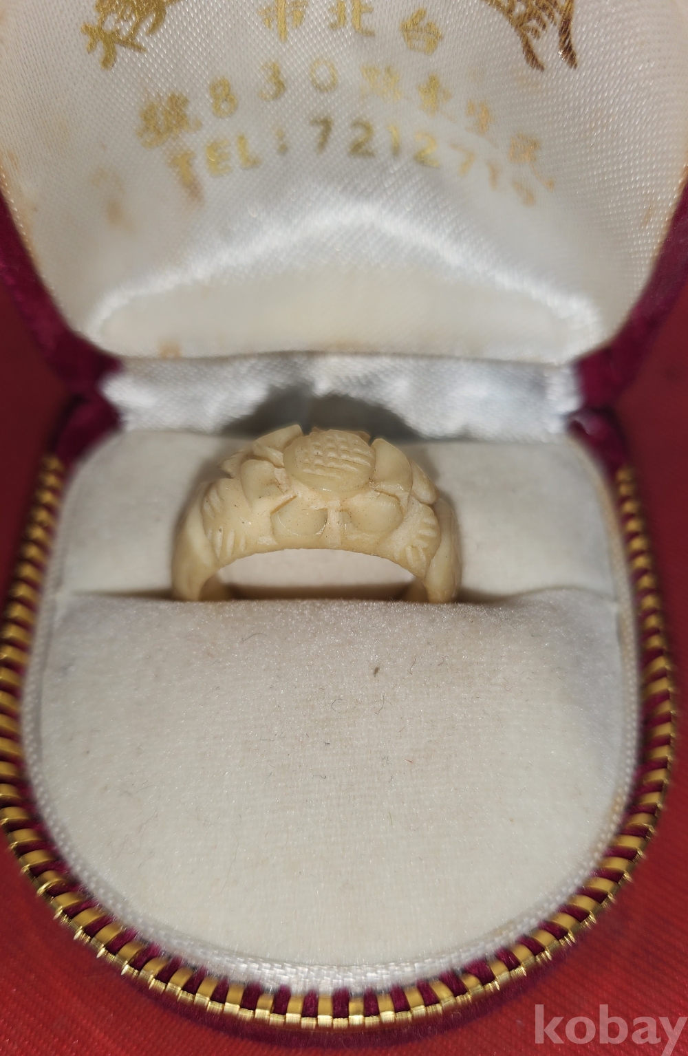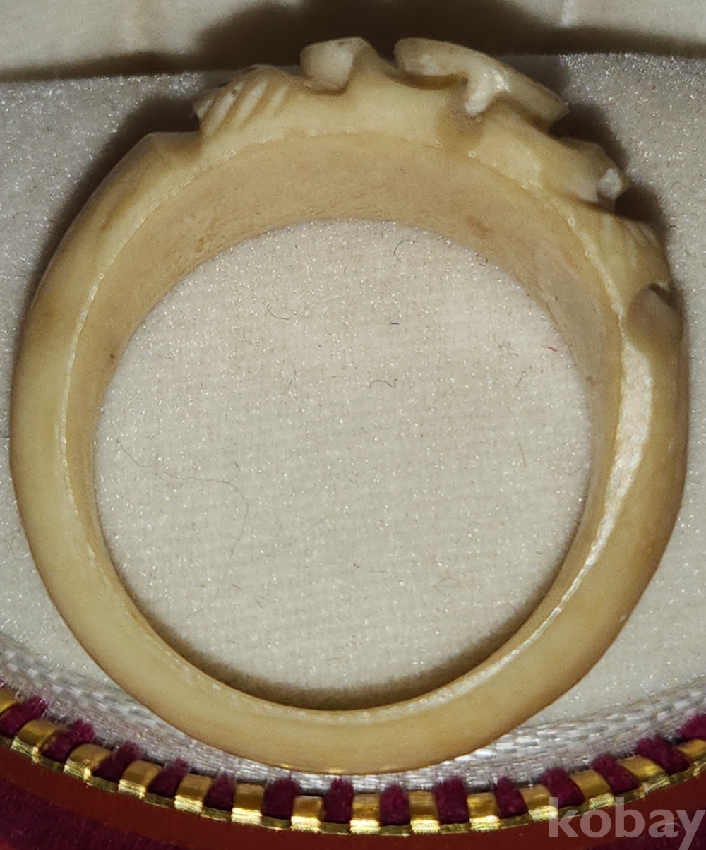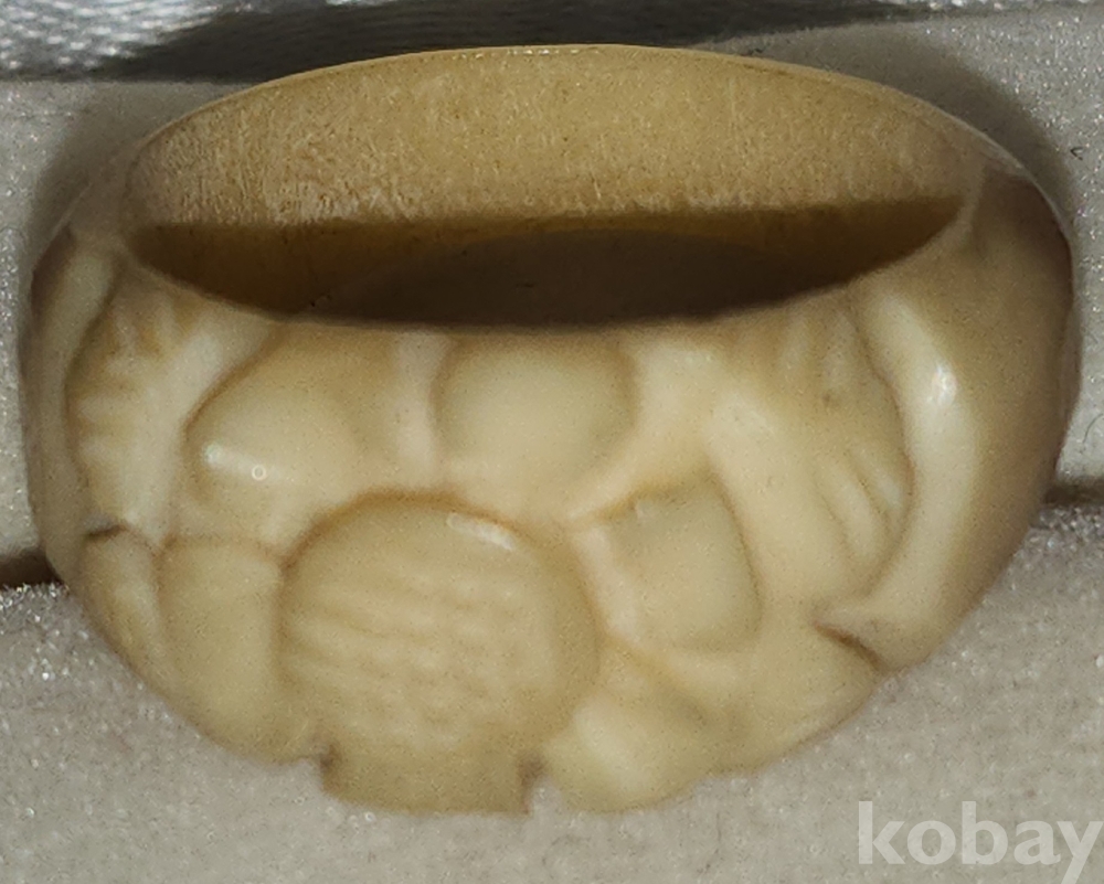 동물의 뼈로 완성된 여성용 꽃문양 반지입니다,