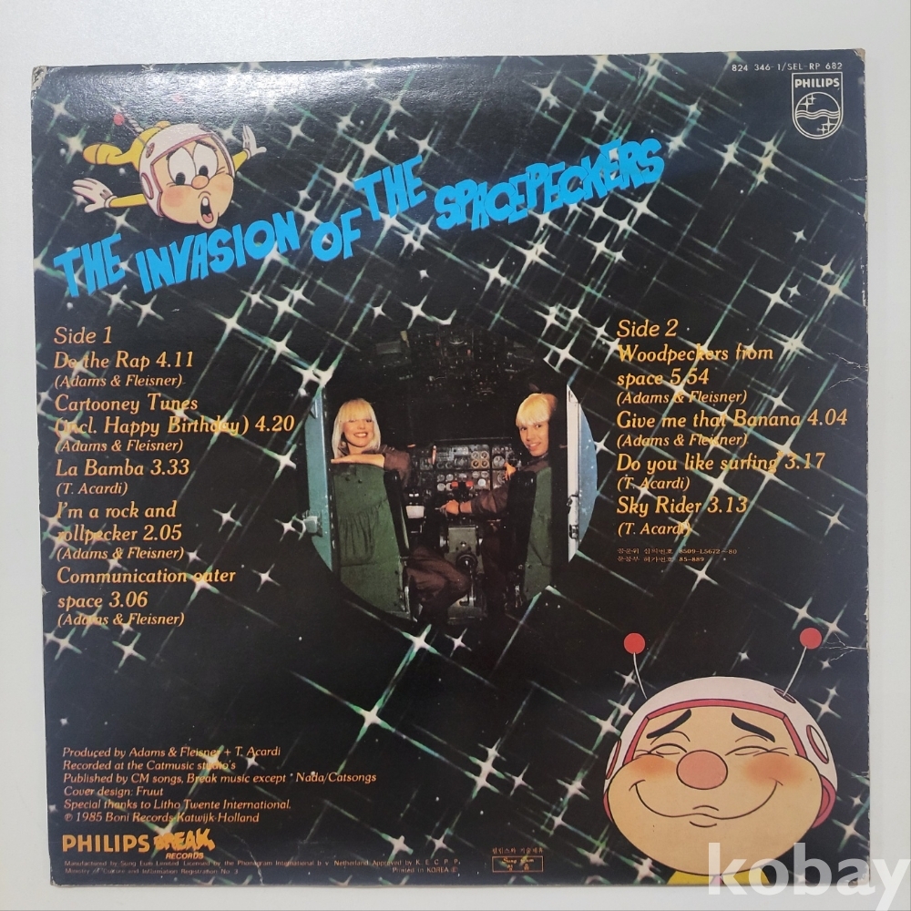 1985년에 발매된 듀오 비디오 키즈(Video Kids)의 데뷔 앨범인 **'The Invasion Of The Spacepeckers'**의 LP 레코드판입니다.