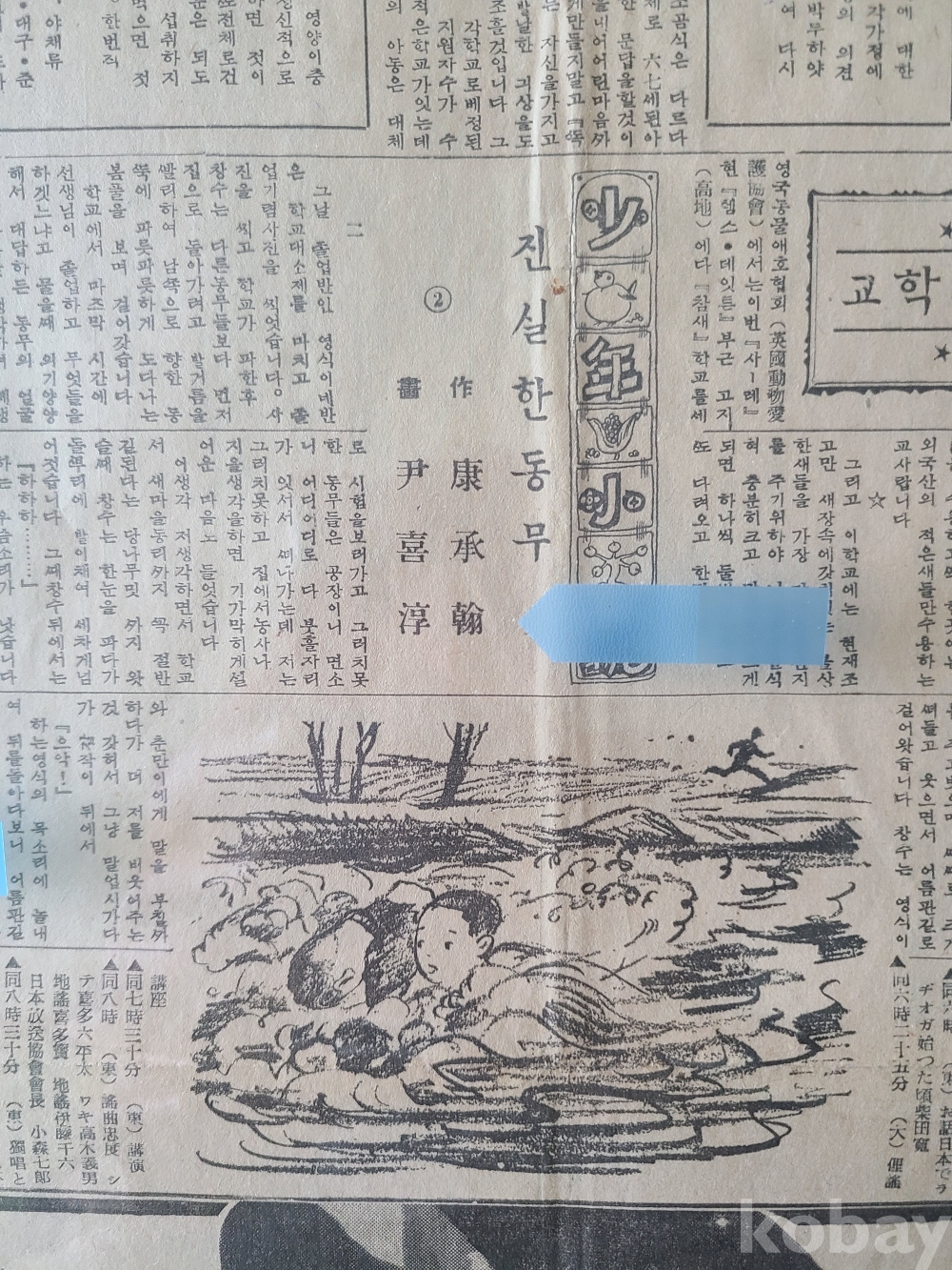 康承翰 作 소년소설 [진실한 동무] 수록 1937년3월22일 每日申報