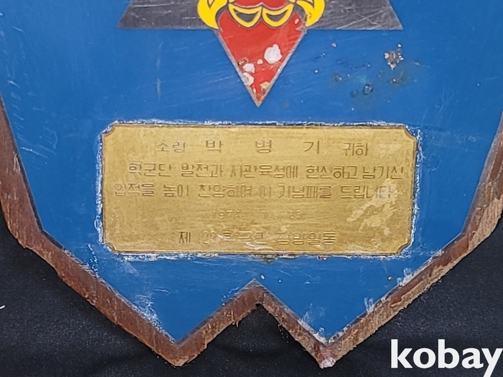 빈티지 세월 감이 느껴지는 희귀한 1974년 학생군사교육단 학군사관 학군단 육성과 사관 육성의 헌신 감사 기념패입니다.