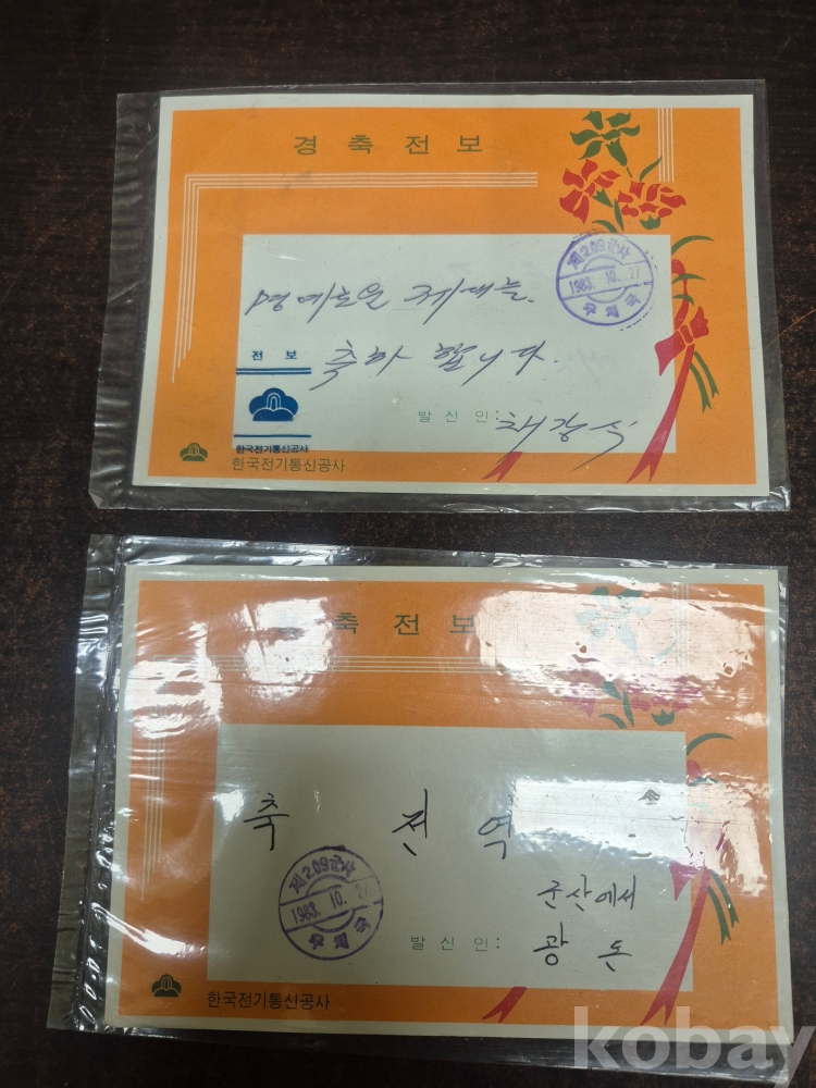 1980년대 군자료 전역축하 메시지 전보 2점 소중 중위 계급장 3점 해병대 버클 1점 군용 라이트1점 군용면도기 15*10