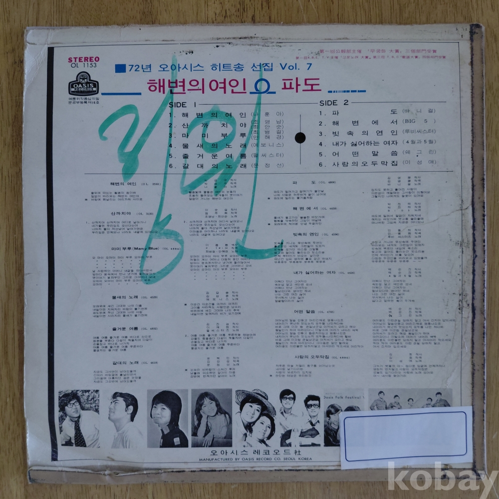 오아시스 히트송전집 7집 lp 입니다