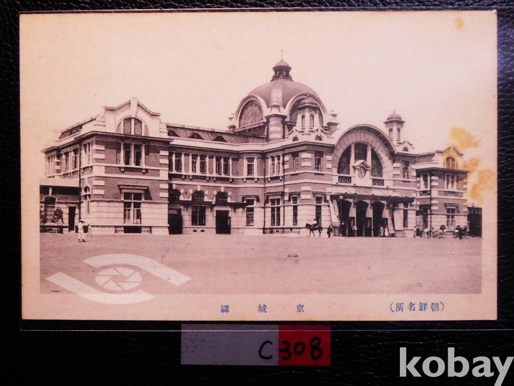 ▣근대한국엽서(진본): 경성역, 경성정차장, 현재 서울역 옆의 전시실, 변색 흔적 있어 저렴, 히노데상행 발행/1매.
