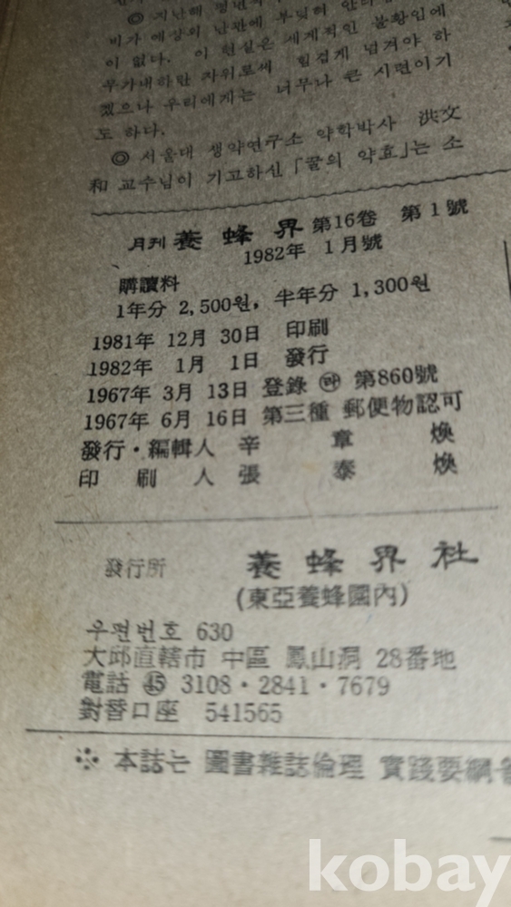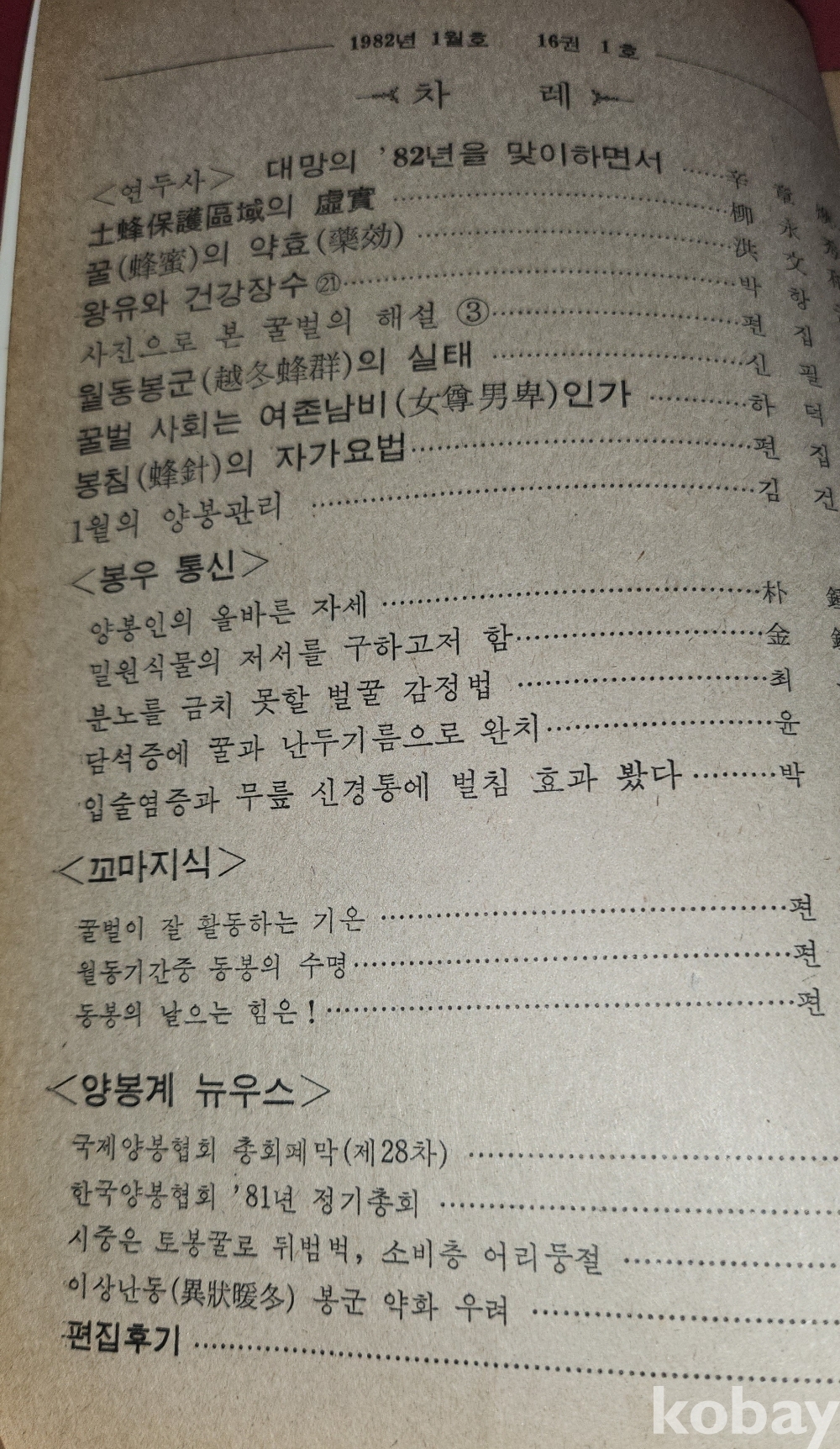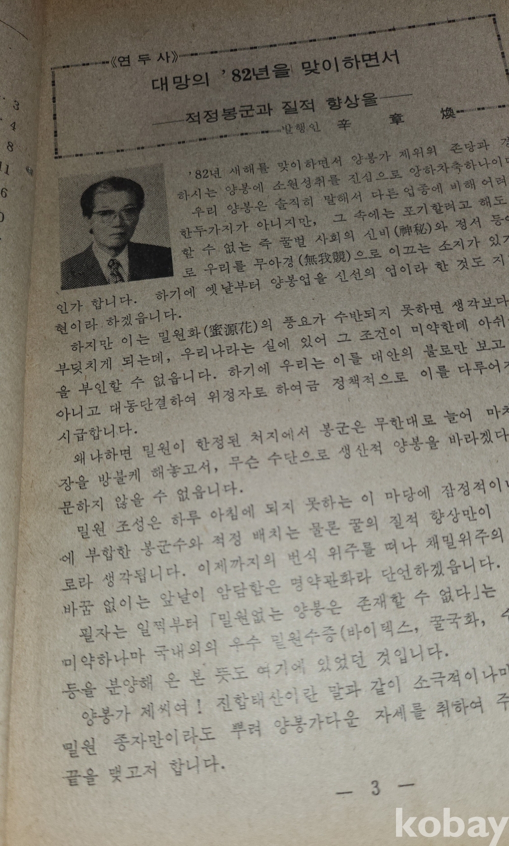 1982 년에 발행된 양봉계(養蜂界) 양봉계사 발행 1 월호입니다,