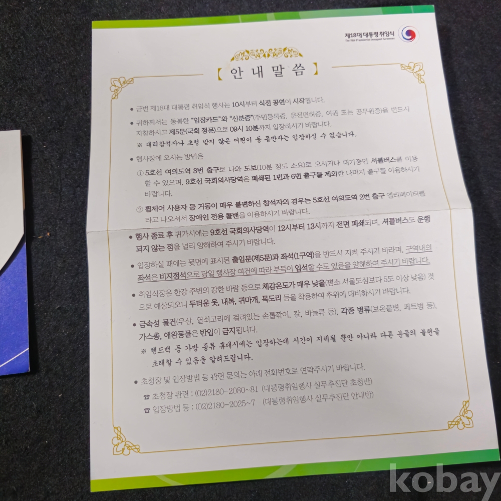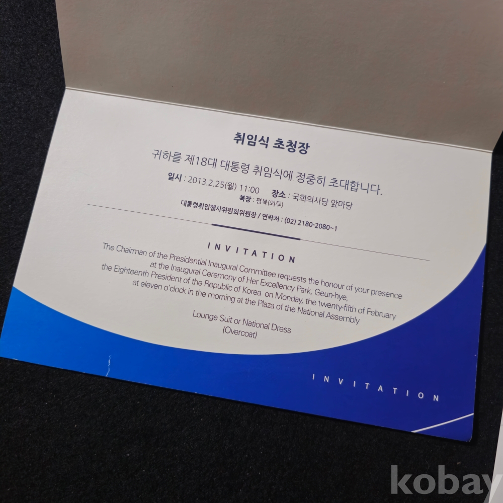 ((대통령자료)) 2013년 제18대 박 근 혜 대통령취임식 초청장 & 안내말씀
