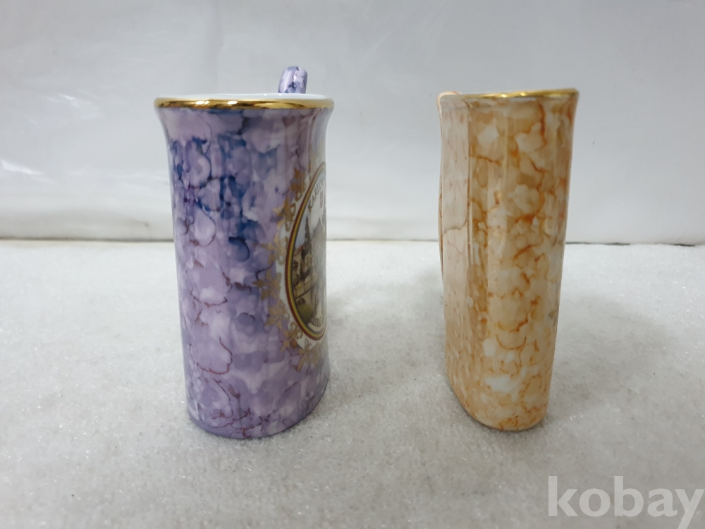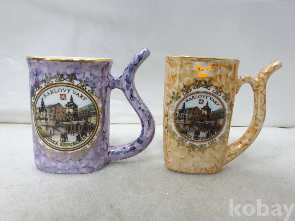 {천원경매} Y-1-1879 체코기념품 카를로비 바리 포하르 빨대컵 2개 (6.5*9.5, 보라, 주황)