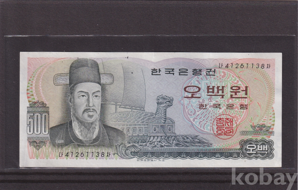 - 한국은행 1973년 이순신 오백원 준미 지폐