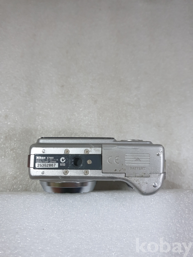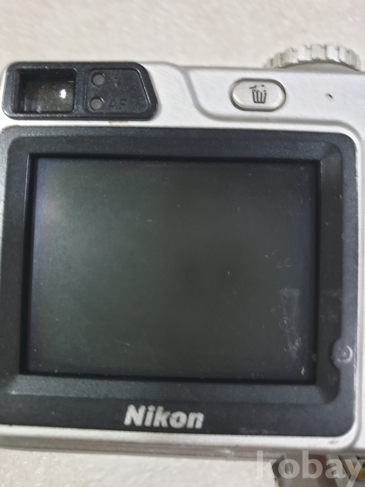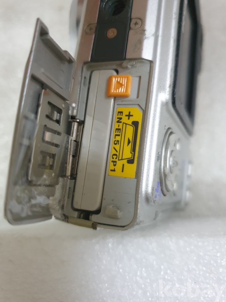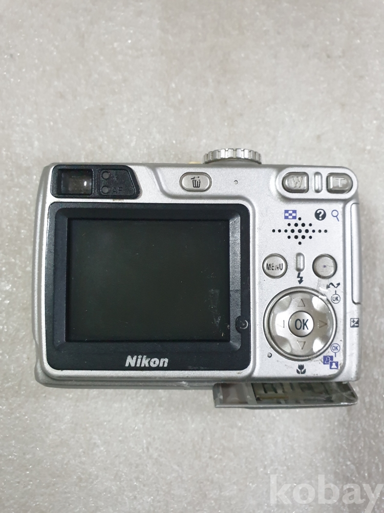 {천원경매}1-1432 니콘 실버색 카메라(건전지 뚜껑 안닫힘,작동, 액정 확인 안됨, 디피용)