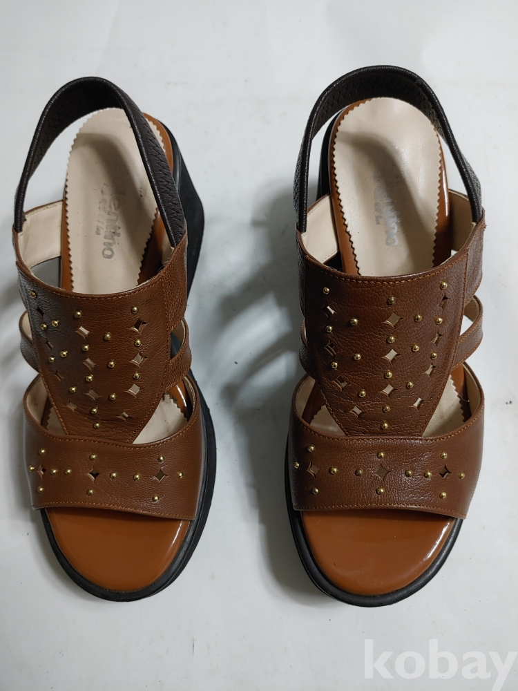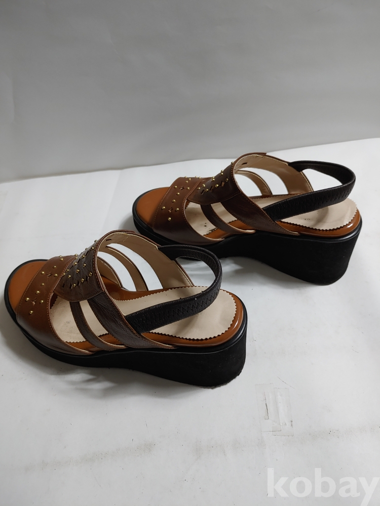 ★천원출발★ P-1-086 브라운 여성 샌들 (230, 굽높이 6.5CM)
