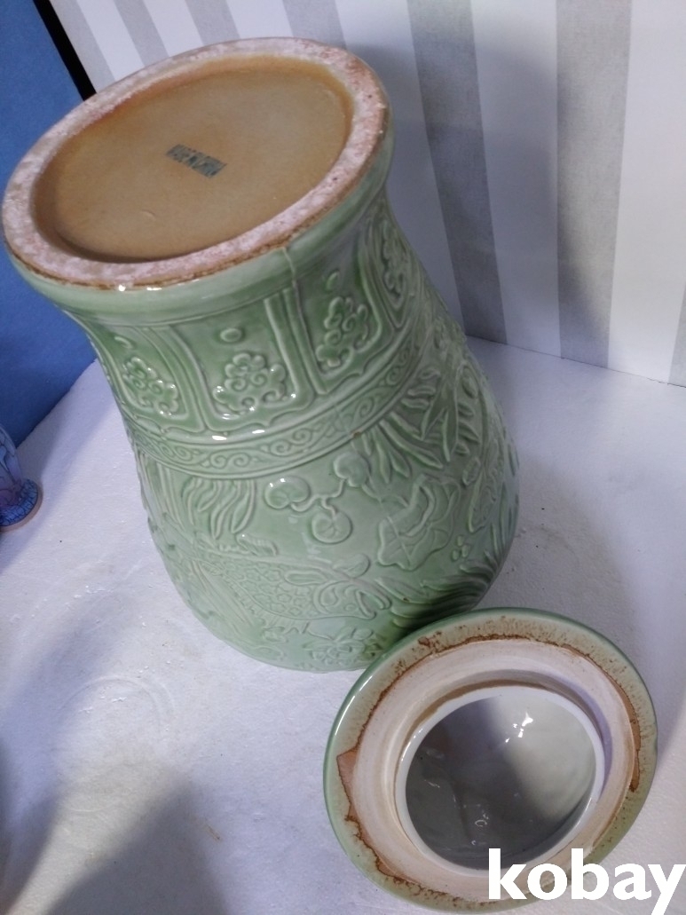 물고기 5섯 마리가 연꽃과 수초 사이에 헤엄치는 모습을 양각으로 표현한 도자기 입니다.