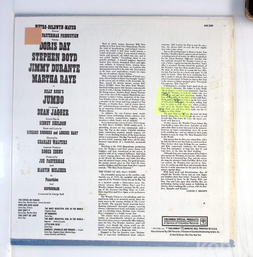 Doris Day, Stephen Boyd (2), Jimmy Durante, Martha Raye – Billy Rose's Jumbo / 미국반