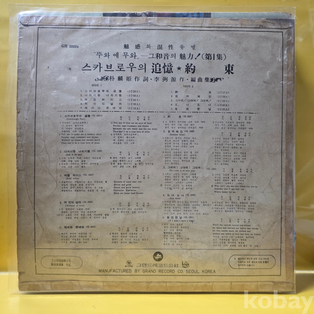 상품 설명 | Side A 1. 스카브로우의 추억 2. 나의사랑 나의기쁨 3. 에델바이스 4. 저언덕 넘어 5. 제네파 쥬네파 Side B 1. 약속 2. 썸머와인 3. 그대여! 그대여! 그대여! 4. 도나도나 5. 동전한닢 |