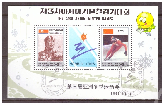 (동계스포츠) 북한 1996.2.4 제3차 아시아겨울철경기대회 sheetlet of 2+label CTO