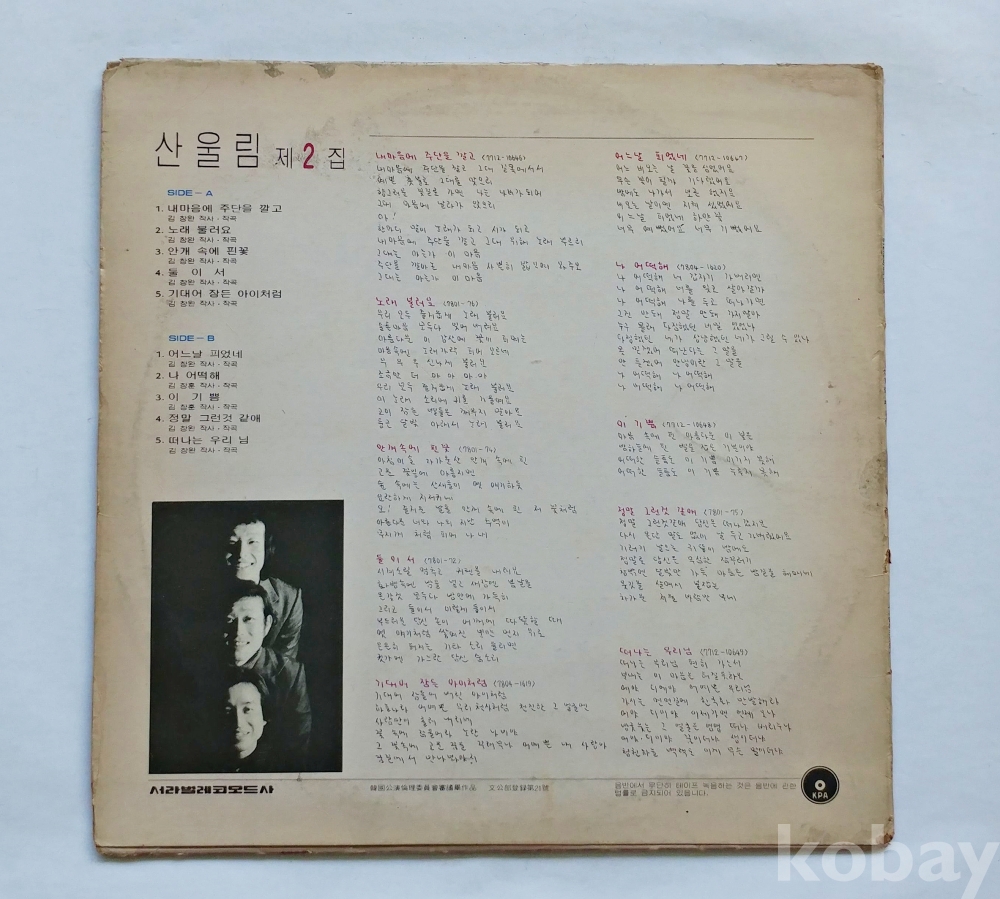 | 자켓상태 | EX : 약간의 마모, 모서리 찢김 존재 | 음반상태 | EX : 재생에 영향 없는 가벼운 기스 존재 | 발매정보 | 알수없음 | 가사지여부 | 무 |