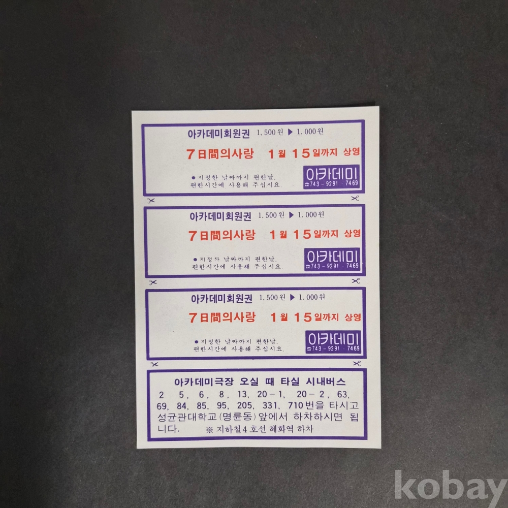 [희귀 근대사 자료] / (영화카드/리플렛/회원권/엽서/광고카드 등) / 7일간의 사랑