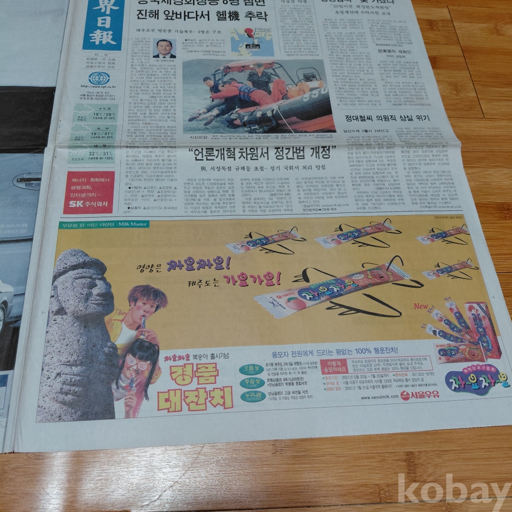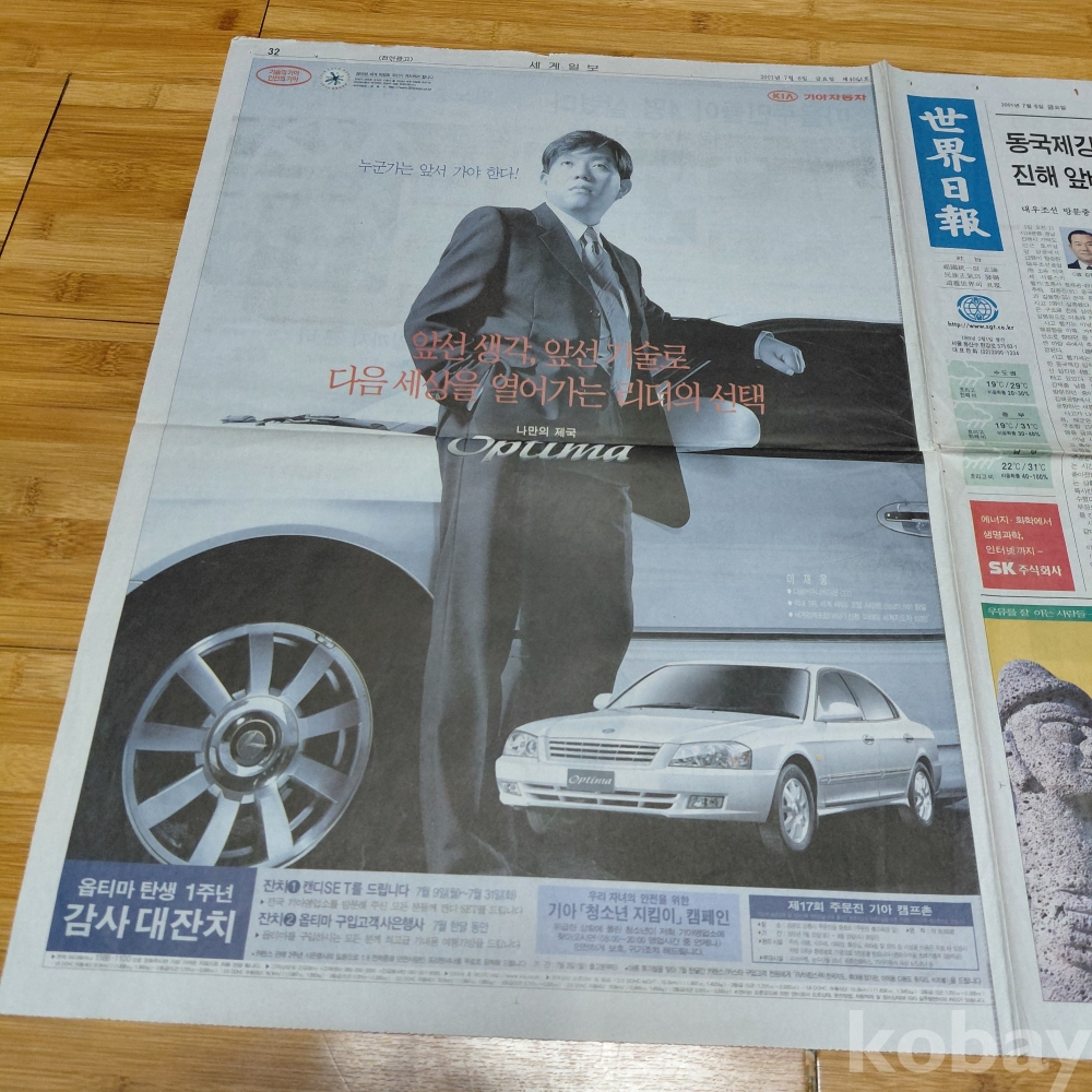 기아 옵티마 승용차 ㆍ서울우유 짜요짜요 광고 세계일보 2001년 7월6일 올려드립니다