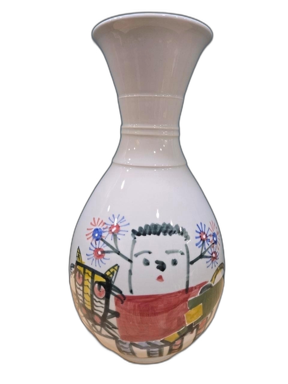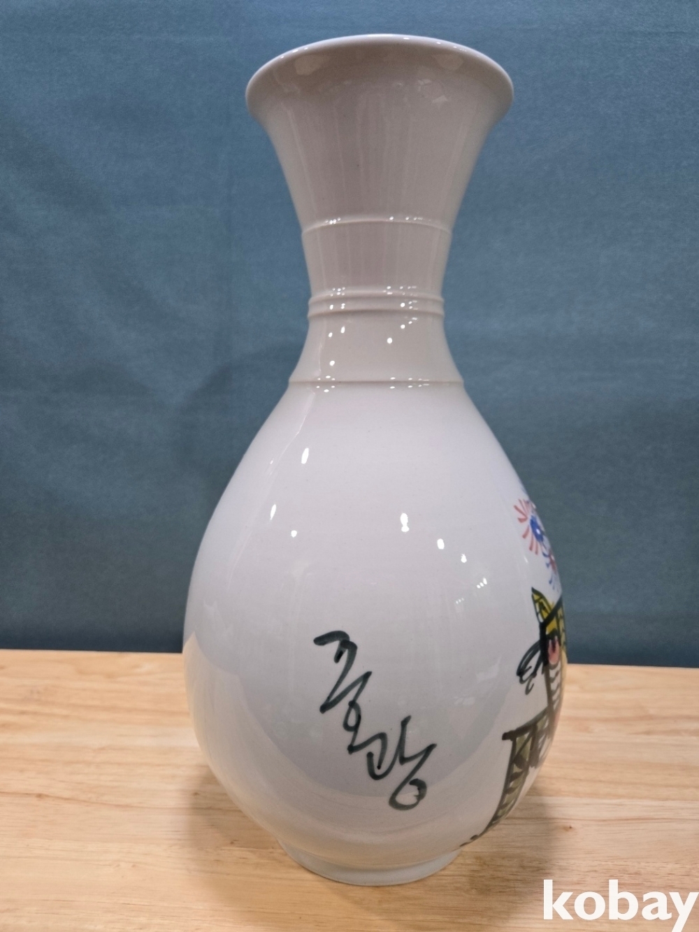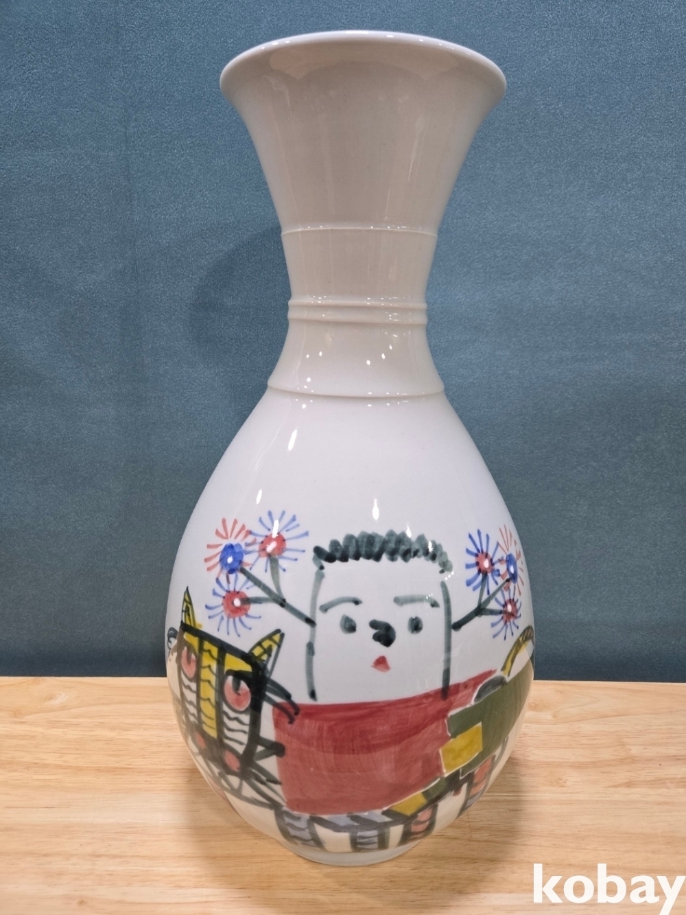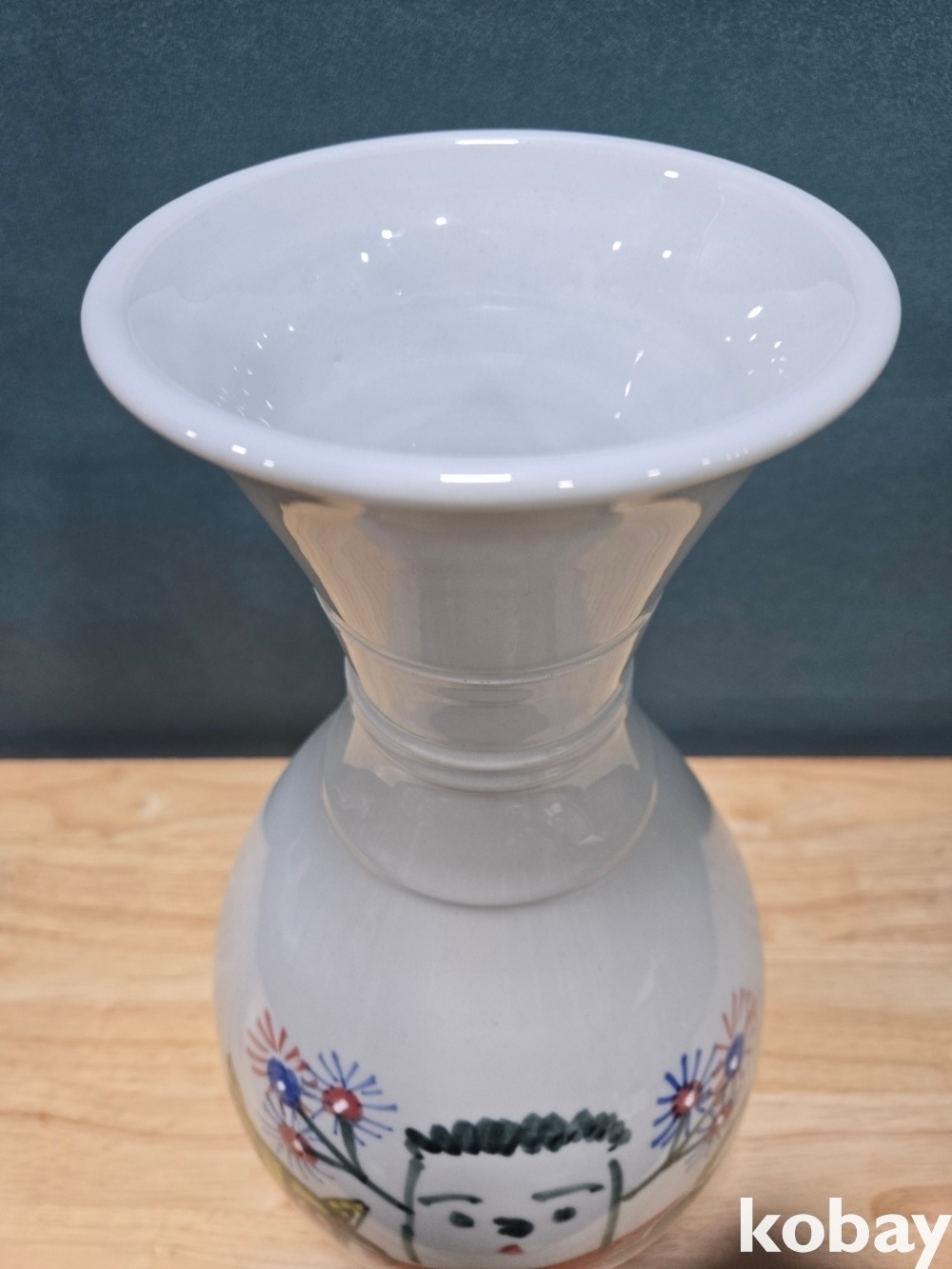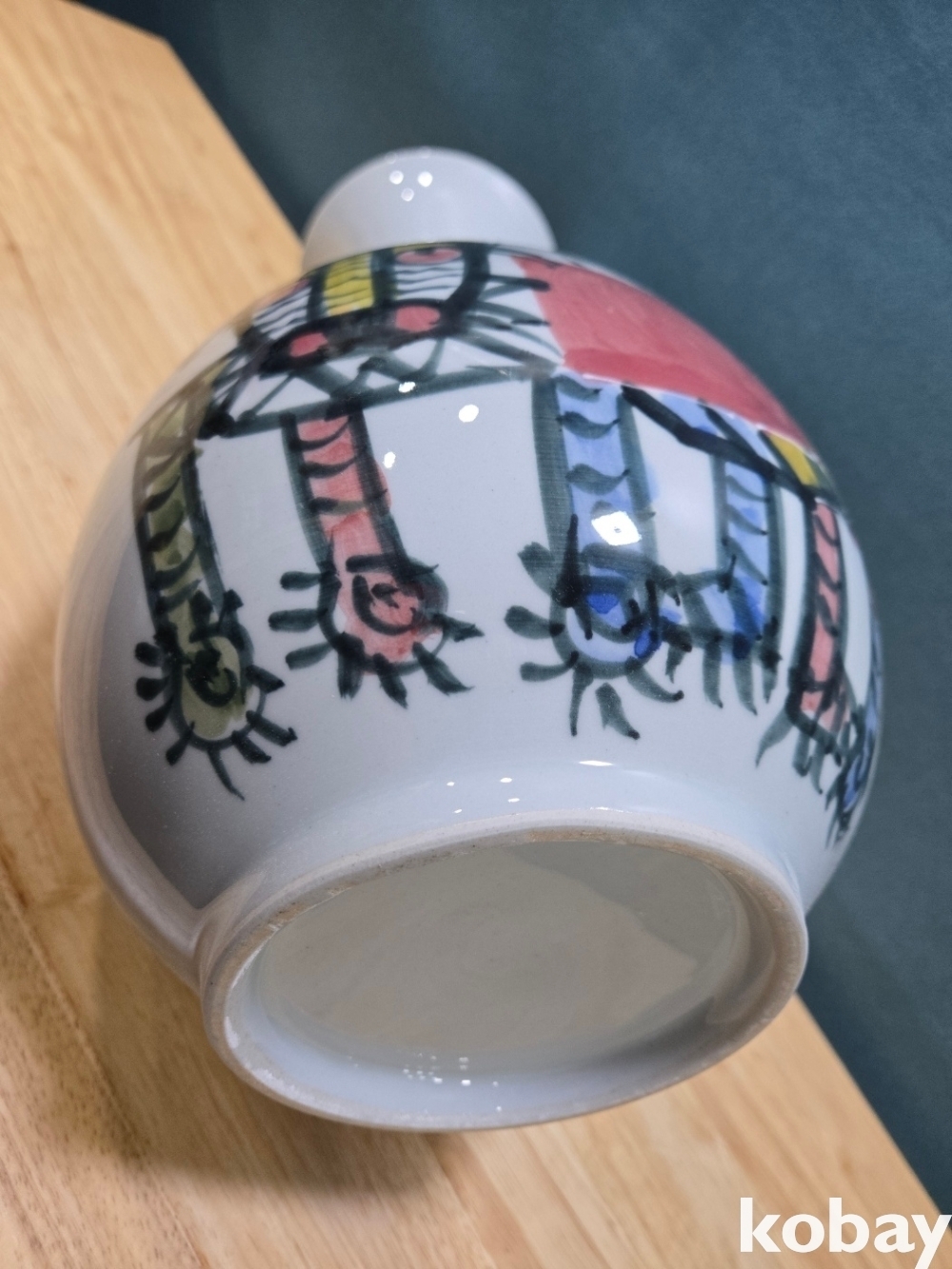 중광 그림이 있는 입이 큰 도자기 입니다.