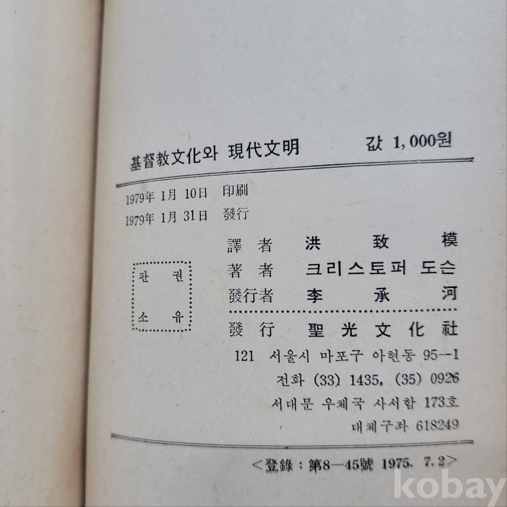 [희귀본] 크리스토퍼의 기독교문화와 현대문명 (1979년 초판본) : 중급/서고-종103