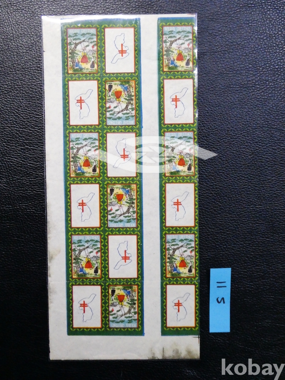 ▣해주구세요양원 1939년 크리스마스씰 <그네타기>의 25매 씰첩의 마지막 페인용 전지 완전판(씰9+라벨9).