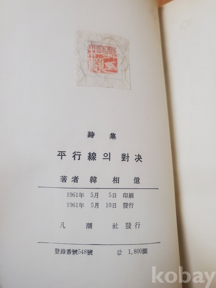 1. 평행선의 대결, 한상덕, 범조사, 1961년, 163쪽, 상태 상, 사진 참조