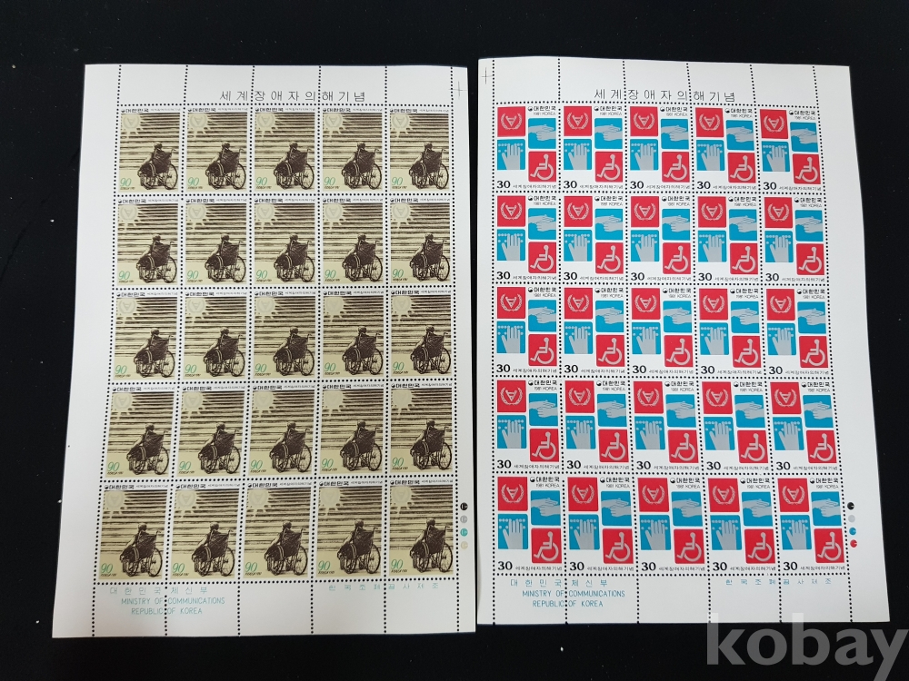 - 미사용 1981년 세계 장애자의 해 기념 전지 2종 세트